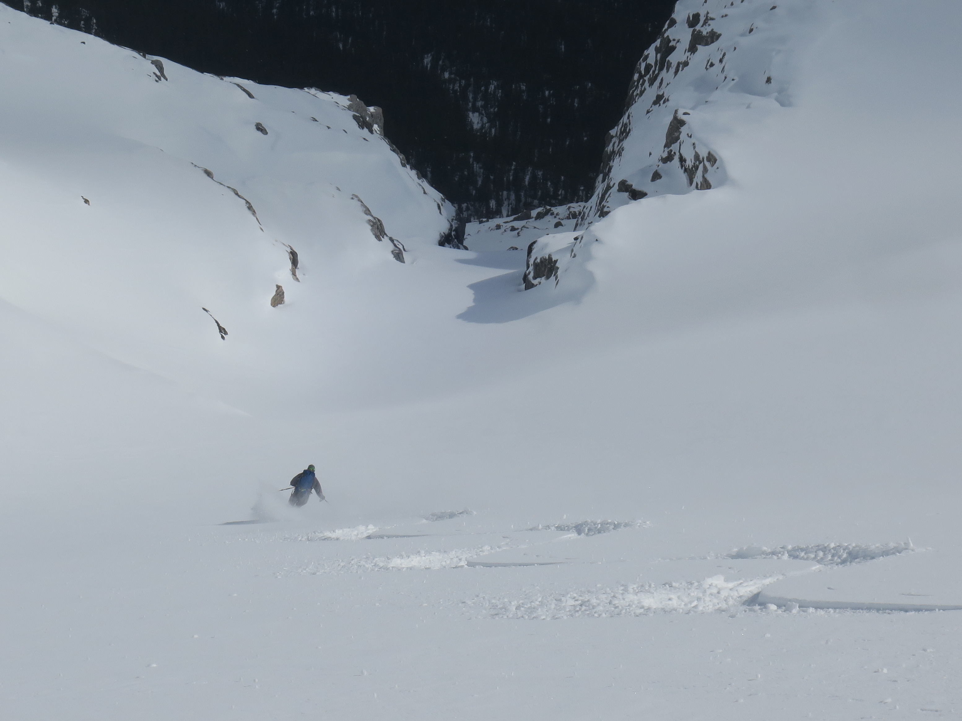 10-15 cm of recent snow with minimal wind effect on high North aspects remained dry all morning. South aspects provided good dust on crust skiing and even a bit of corn skiing on the way home. The crust was supportive all the way down to the highway and made for an easy exit. Ski crampons were useful in a few areas on the ascent.