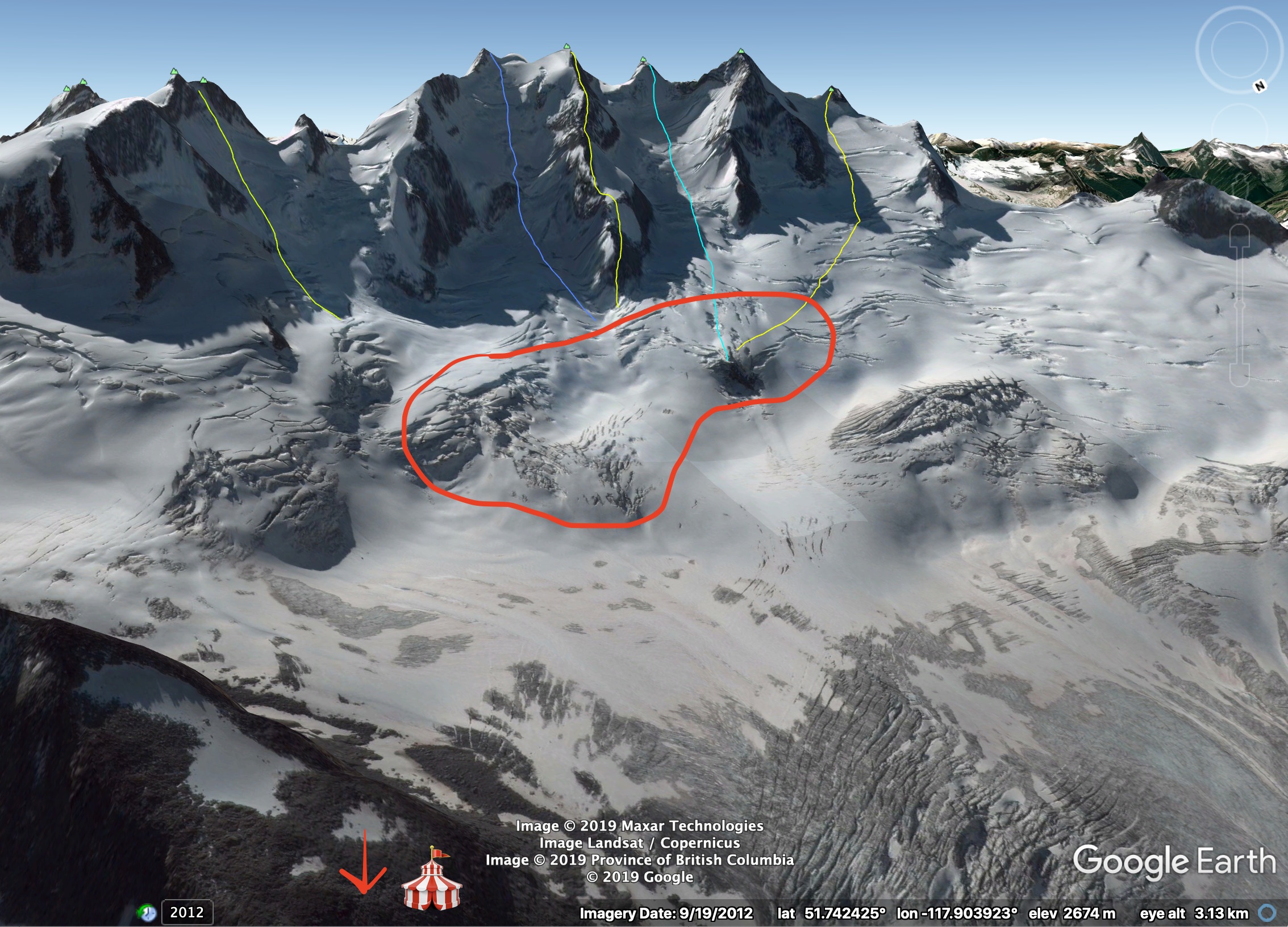 On our flight out we observed the remanence of a small number of natural avalanches to size 2 in the NW-SW facing extreme terrain. This was our first sight of the natural cycle that had been reported earlier in the week by neighboring operations.