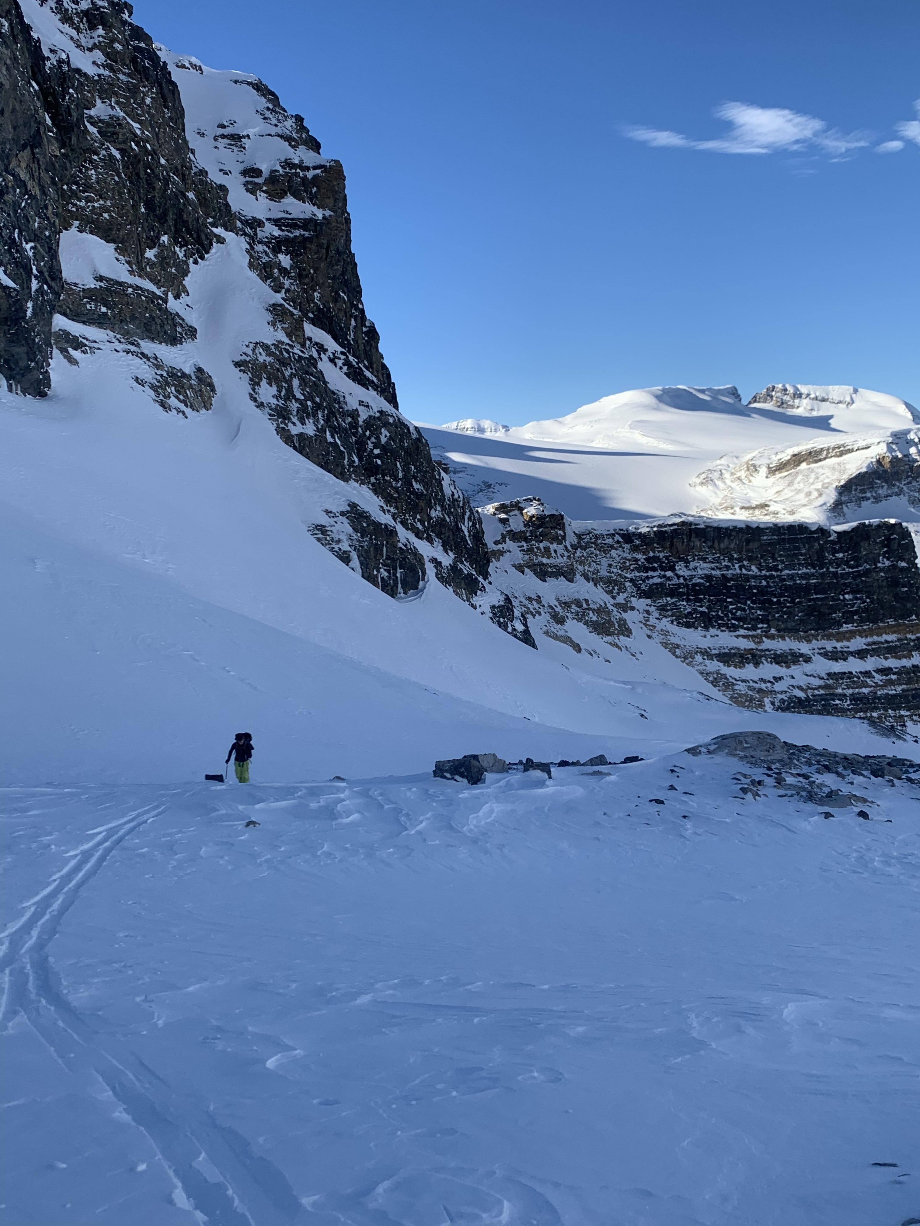 We skied up to Little Crowfoot peak yesterday. -13 in the parking lot and a high of 2 in the shade on the Ferris glacier. It felt like the inversion bottom was at about 2150m. Clear skies and a light southerly wind made for quite pleasant conditions.