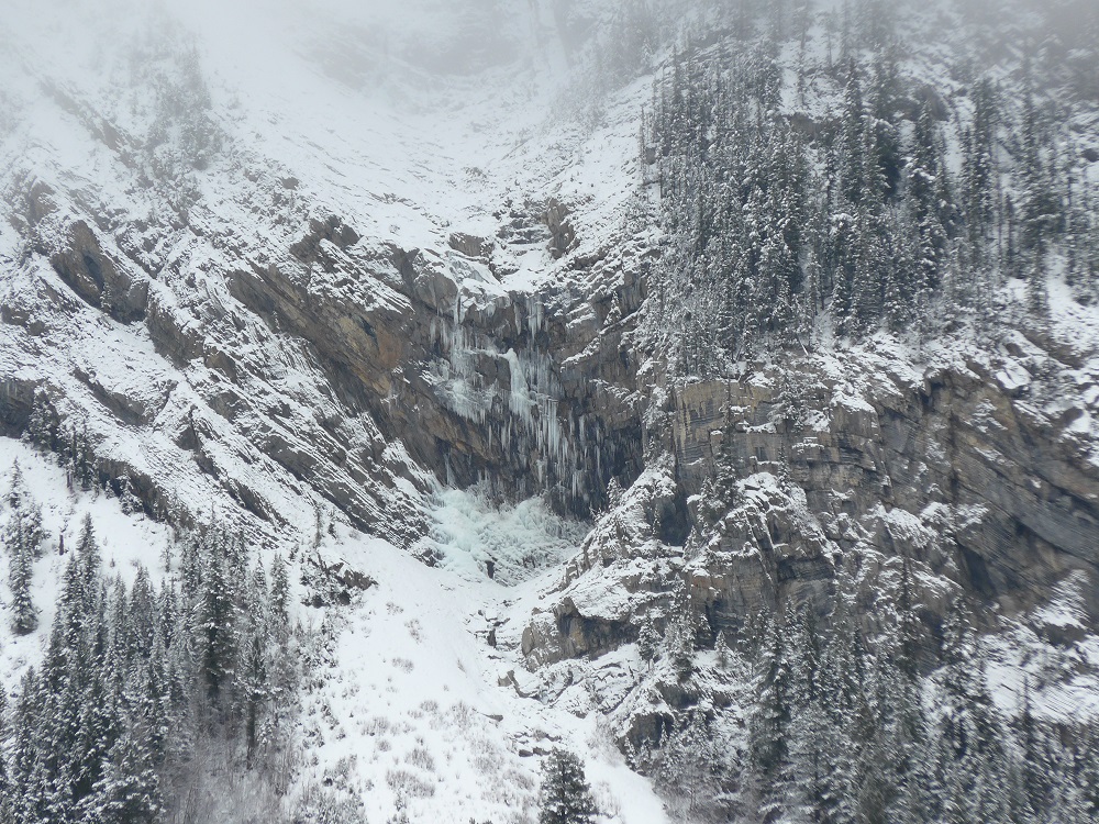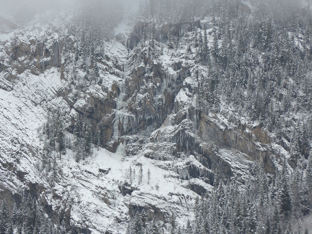 Went down to Field today to check on the condition of the ice climbs. The short answer is: wait. Twisted is probably the best looking thing down there, although not really formed it looks like you might be able to climb a left line. Massey's, Silk Tassel, Pilsner, Carlsberg and Guinness are all not formed. Some icicles around the edges, so some of the mixed routes might be possible, but no pure ice to be seen. 0 degrees and less than 5 cm of snow in the valley bottom today.