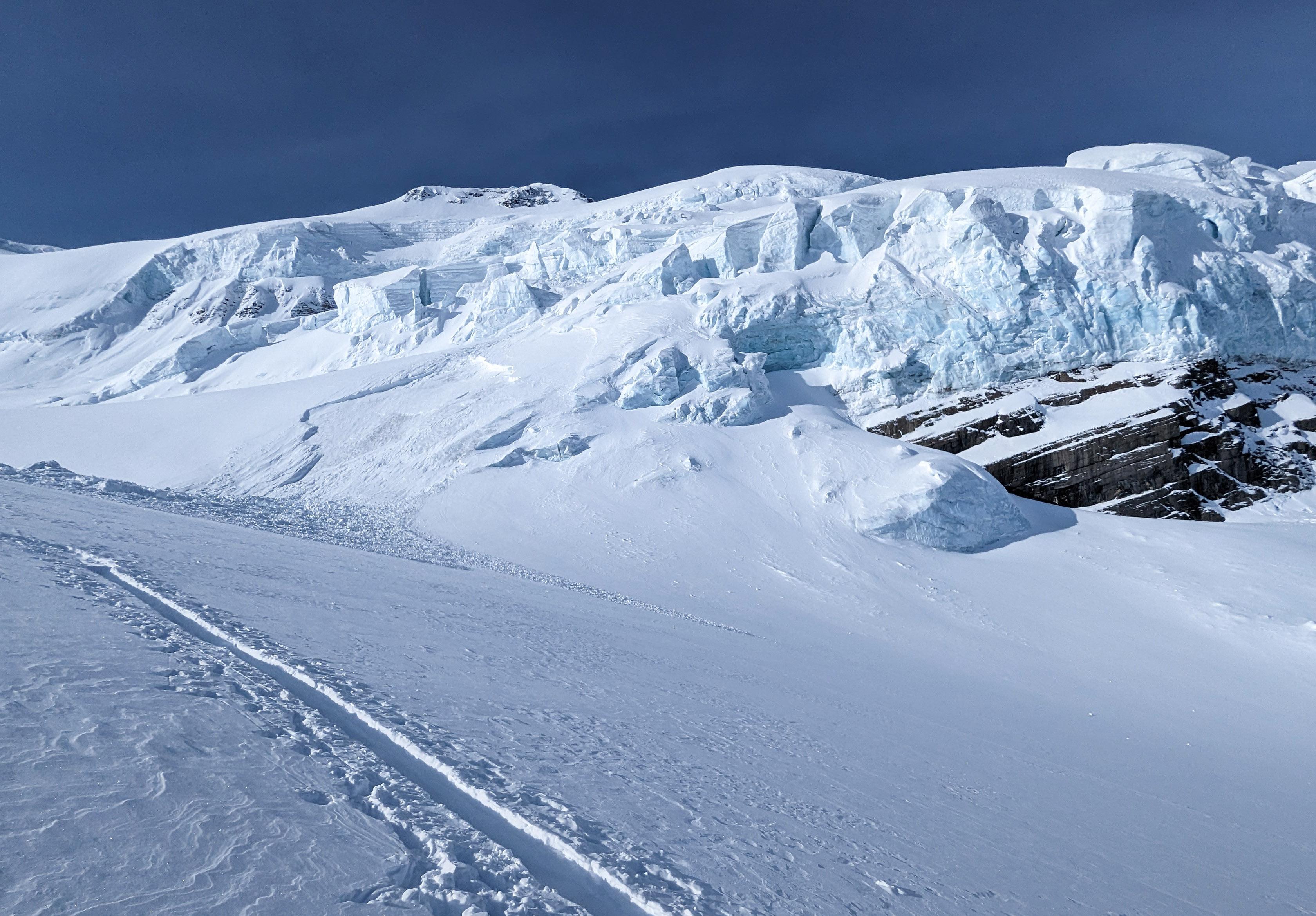 We saw evidence of a widespread avalanche cycle which occurred during the storm on March 13th. The aftermath displayed a myriad of slab avalanches out of very steep lee and often rocky alpine terrain in the size 2-3 range. Many of these appeared to have been triggered by cornice falls. A more recent sz 2 slab avalanche, triggered by a serac fall that made it across the existing up track at the crux pinch on route to the Balfour high col.