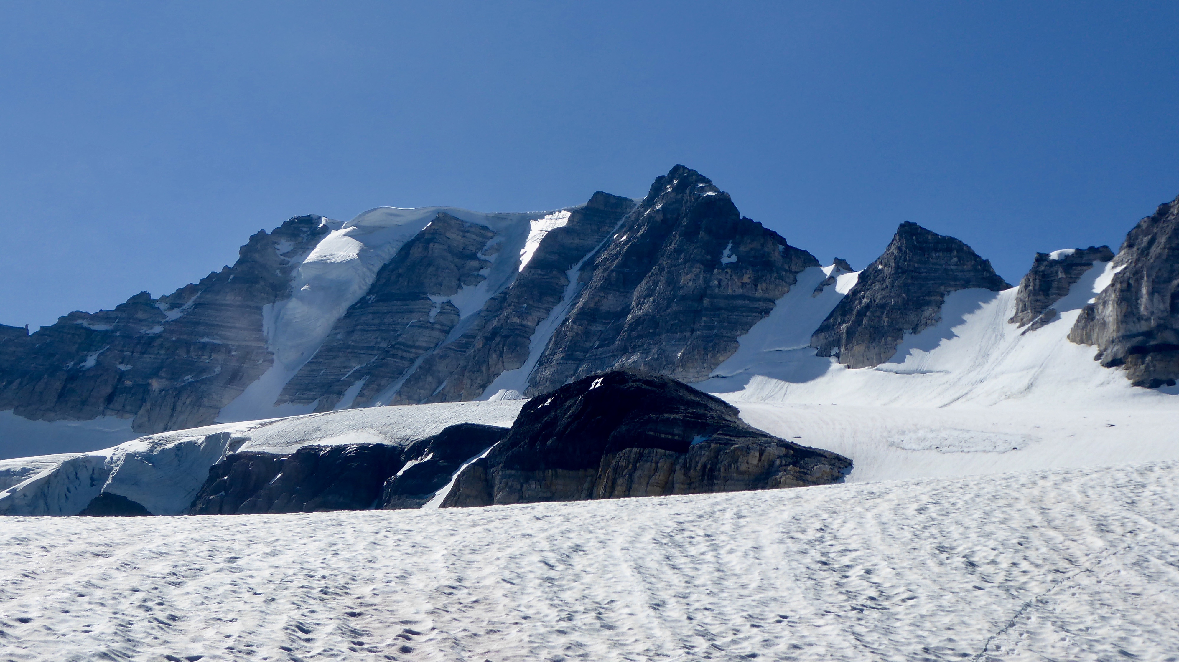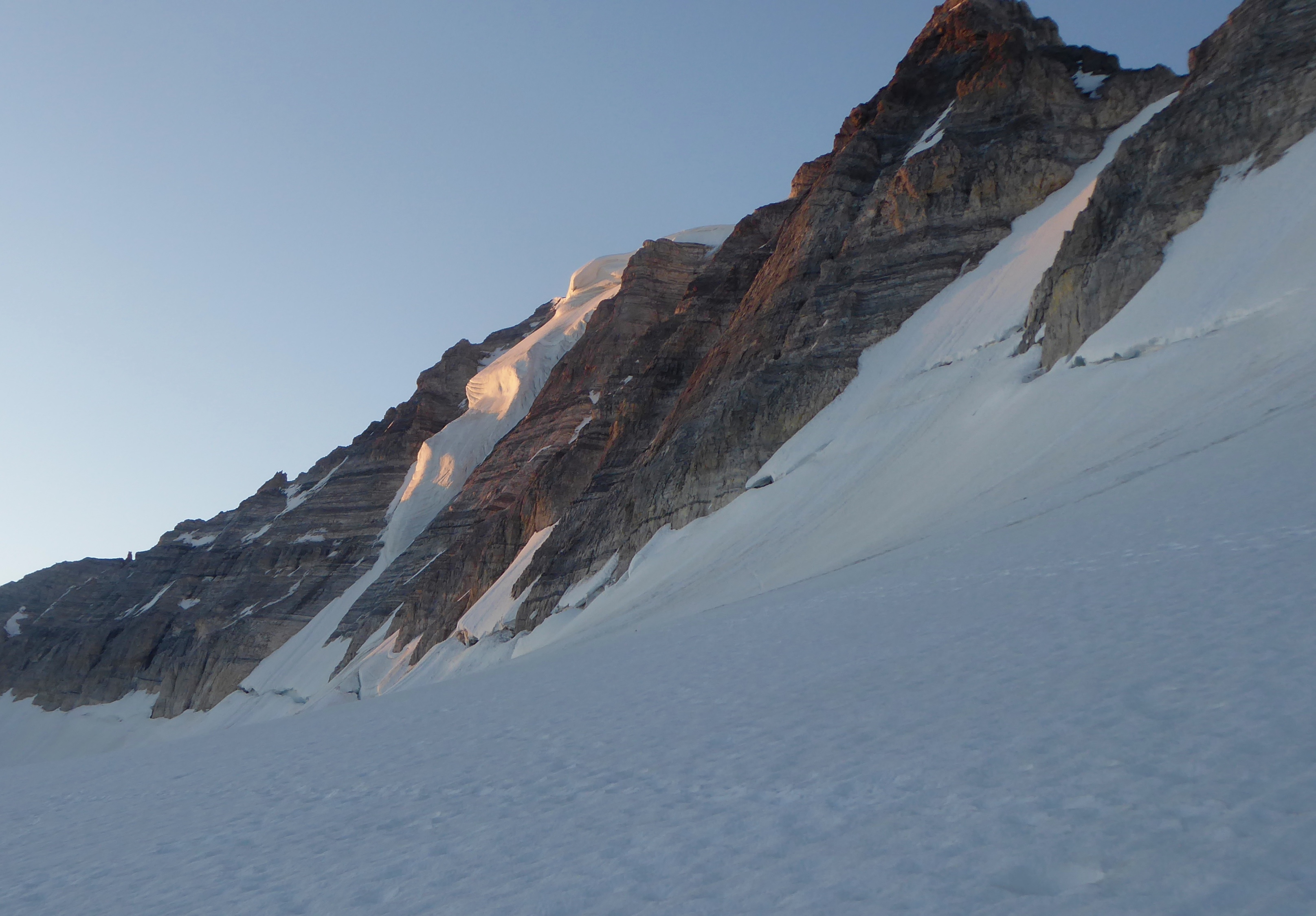 As mentioned in another MCR rockfall is the current main concern. Still some snow melting and triggering rockfall and some glacial margins are also melting and exposing old perched blocks. Our timing and travel strategies were all primarily focused on minimizing exposure to rockfall, especially as the sun first hit the large partially snow covered faces and steep slopes. Thankfully there was only one other party in the area and we worked together to manage the rockfall hazard from each other and to move quickly on the descent of the snow gullies below the west ridge of Fay.