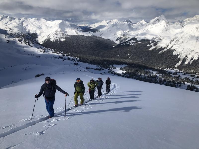 A group of avid skiers spent March 7-11 ski touring out of Mallard Lodge just west of JNP at the headwaters of Hugh Allen Creek.