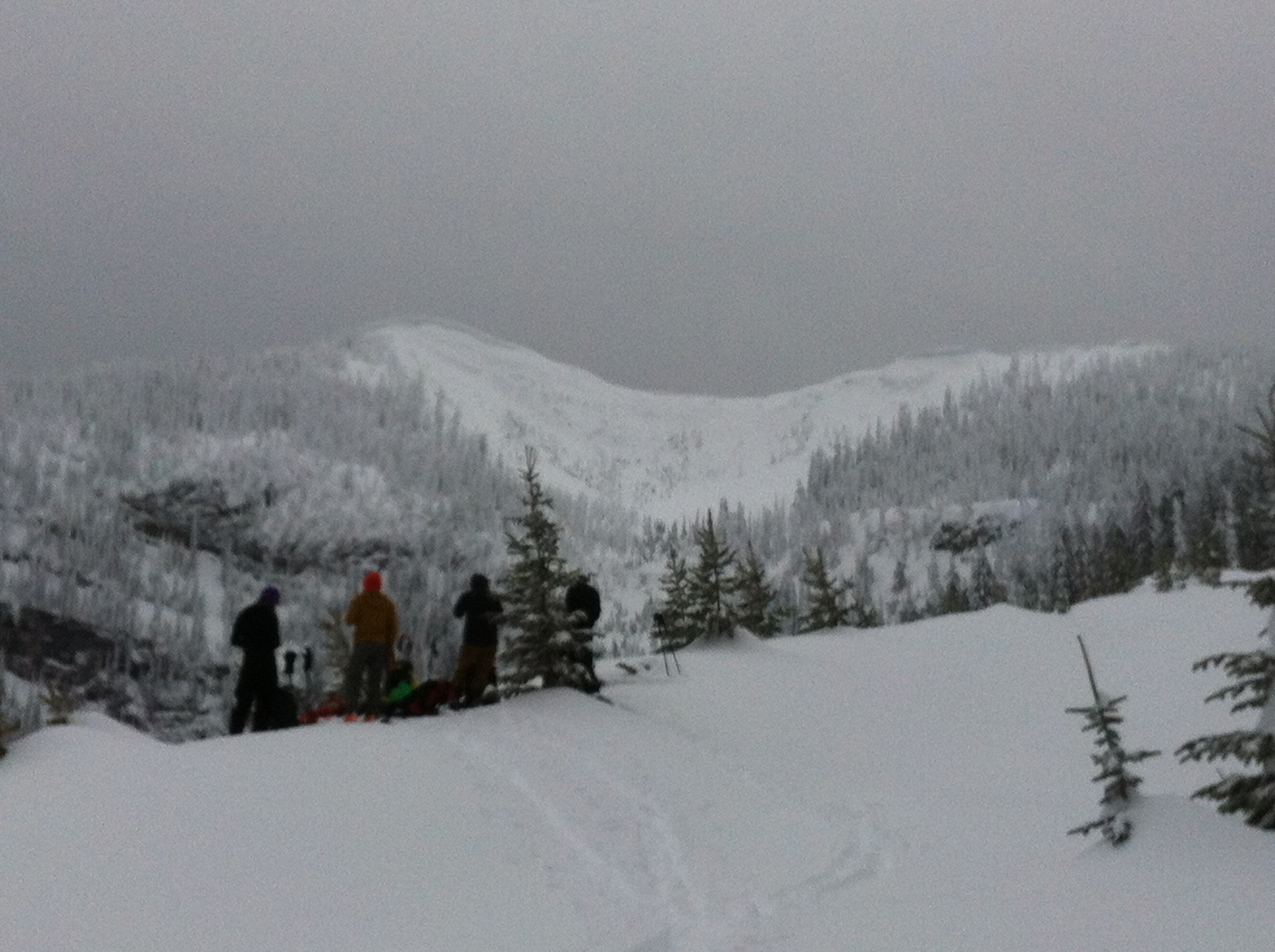 Spent the day in Tunnel Creek with a large group. Skiing was great with a minor rain crust under 20-25cm of new snow below 1650m. Skied in the trees but went to the ridge top to "summit" with a view onto Elko. The cornices were very large and it was a bit of a challenge to get to the top without exposing ourselves. There had been a few large cornice failures in the last 24hrs and we saw evidence of at least one size 2 storm snow avalanche near the ridge top. Not much wind affect until the last 100m of vertical below the ridge.
