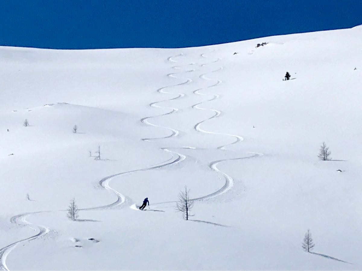 Regardless, the recent avalanche events to the north combined with a couple whumpfs in flat terrain kept us to smaller slopes, mostly 30 degrees or less.