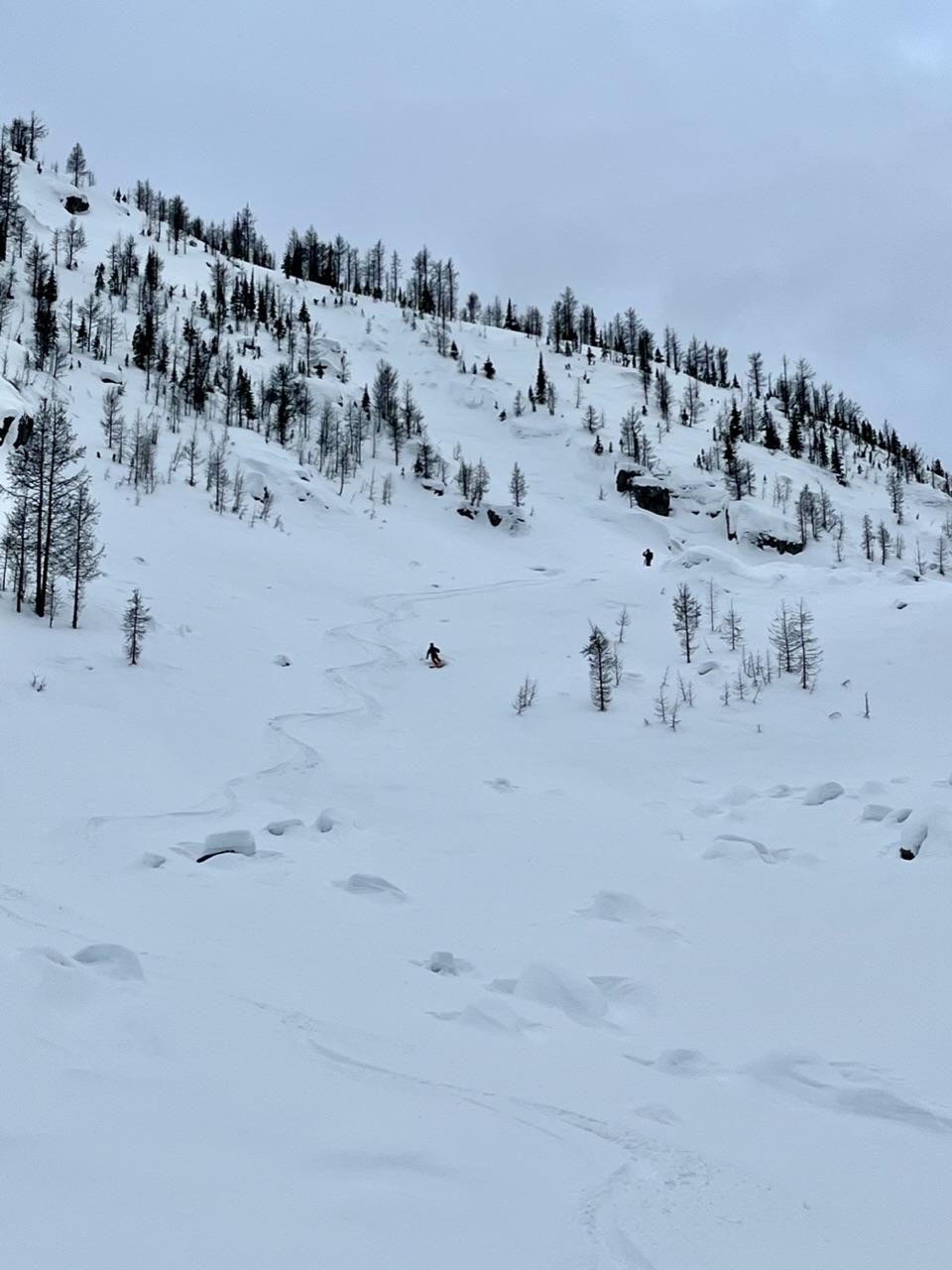 Forests remain thin and faceted with 60-80cm of cover up to 2000m, making for sub-optimal travel conditions both uphill and down.