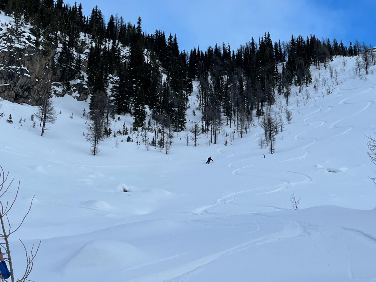 I spent the past few days camping and skiing in the Central Kootenays. We found good skiing above 1700m. Over the course of the trip approximately 4cm of snow fell. Cool temperatures, broken skies and light to moderate winds have preserved surface snow conditions.