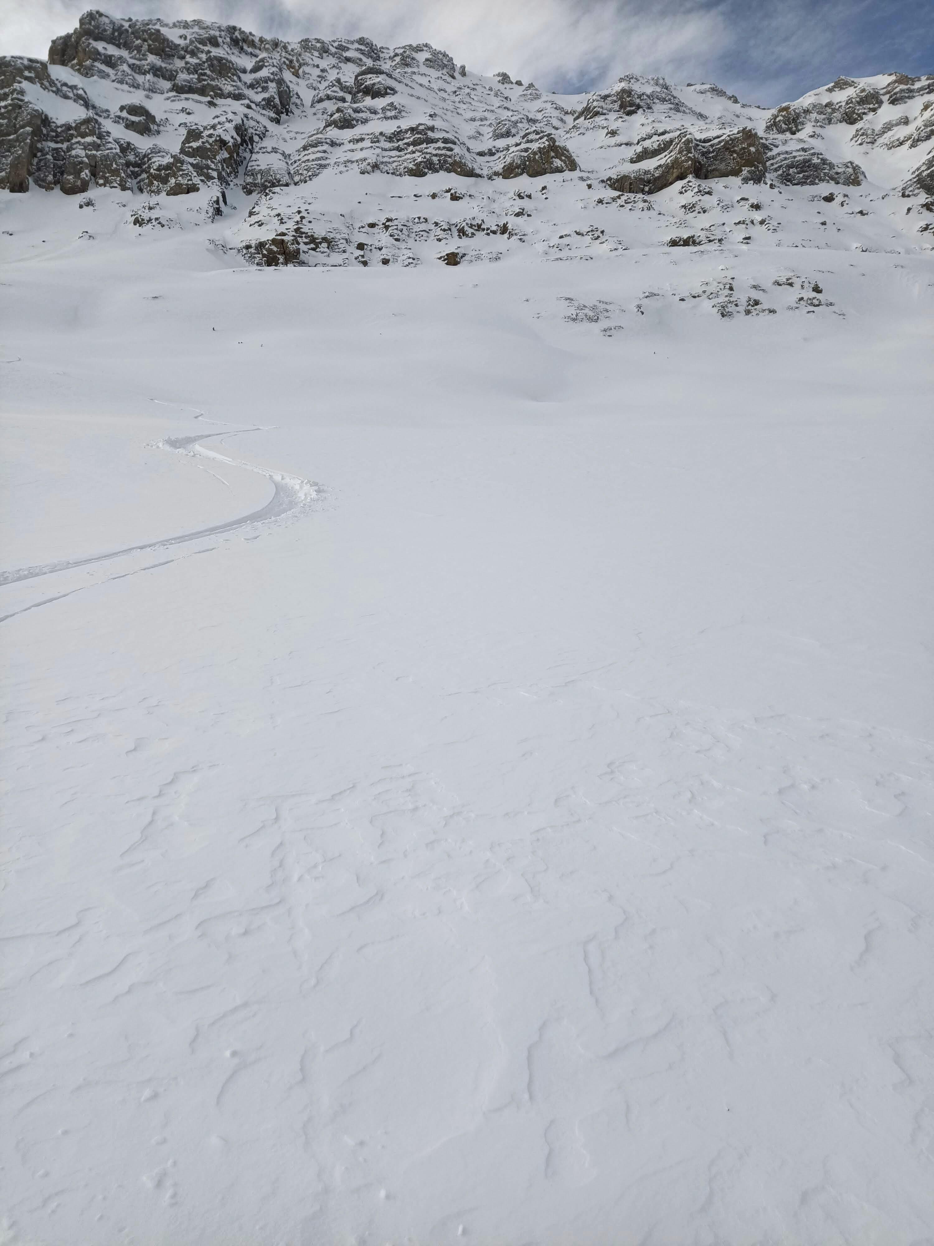 I spent the day ski touring on E facing slopes above Hwy 93N today. A beautiful day with broken skies and sun and quite a lot of wind. Sheltered locations provided great skiing, open slopes were wind affected, and windward / West facing slopes were scoured. I saw a few recent size 1-2 slab avalanches (<24 hrs) out of steep alpine wind-loaded terrain.