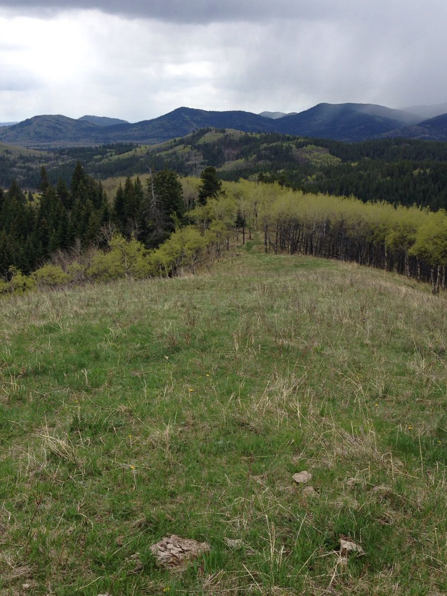 We headed up the east ridge of forked Ridge travelling on dry trails through south facing aspen forests. From pass 2.5km in we descended via west ridge of forked Ridge. Easy walking all the way through trail.