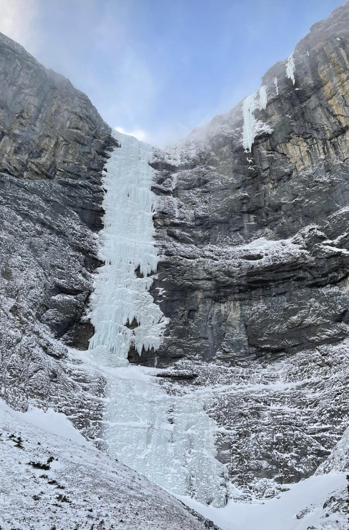 Hello, yesterday (Dec. 20) I guided an ascent of Hydrophobia in the Waiparous region. Driving in was easy with our stock trucks. The hike in was straightforward with minimal snow. No avy risk above the route. It was very windy when we go there but the winds did die down around noon. Temps hovered around 0 to -3C. Hydro climbed well with a bit challenging ice screws here and there with aerated ice. Overall a great day on an epic route.