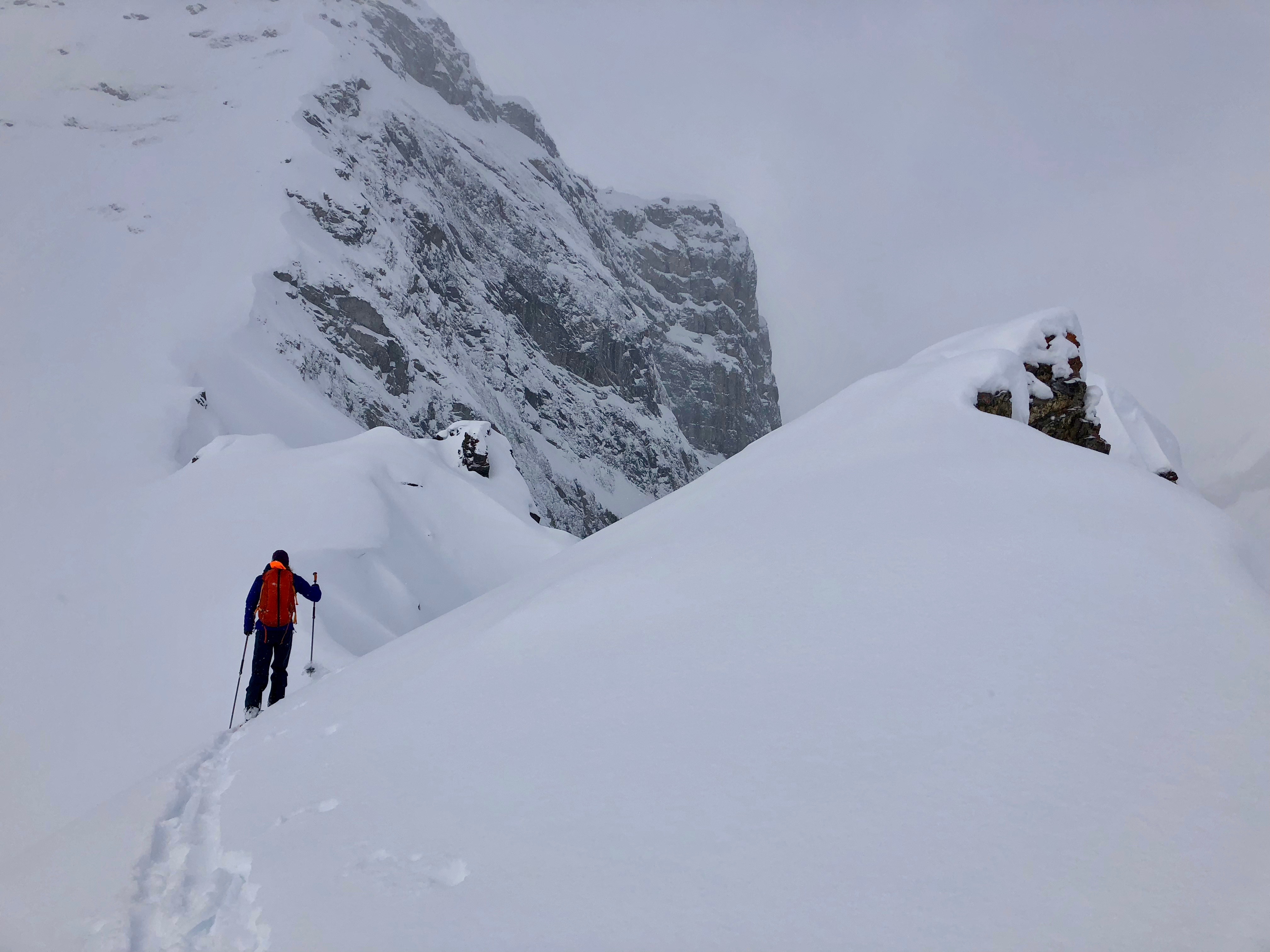 We did not encounter any windslabs where we skied today, however, both yesterday and today I could see quite a bit of snow transport on alpine ridges. We triggered sloughs up to size 1.5 in steeper terrain. We did quite a few 'pole' tests during the day and although things are quite well settled for this time of year, the mid-pack is still quite variable with some surprisingly weak areas.