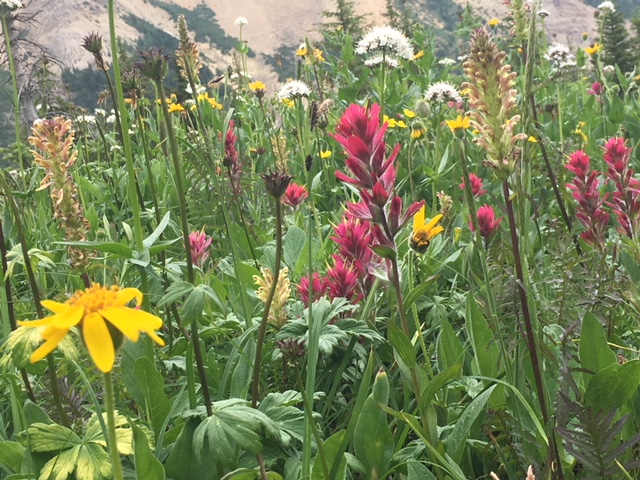A great hike today up to Helen Lake in Banff National Park. Awesome wildflowers and spectacular views! A mixed bag of weather including gusty winds and hail, but the trail remained dry. Please remember to stay on the main trail to prevent braiding and pack out all your trash (not sure why people still think it's ok to not pack out their TP?)!