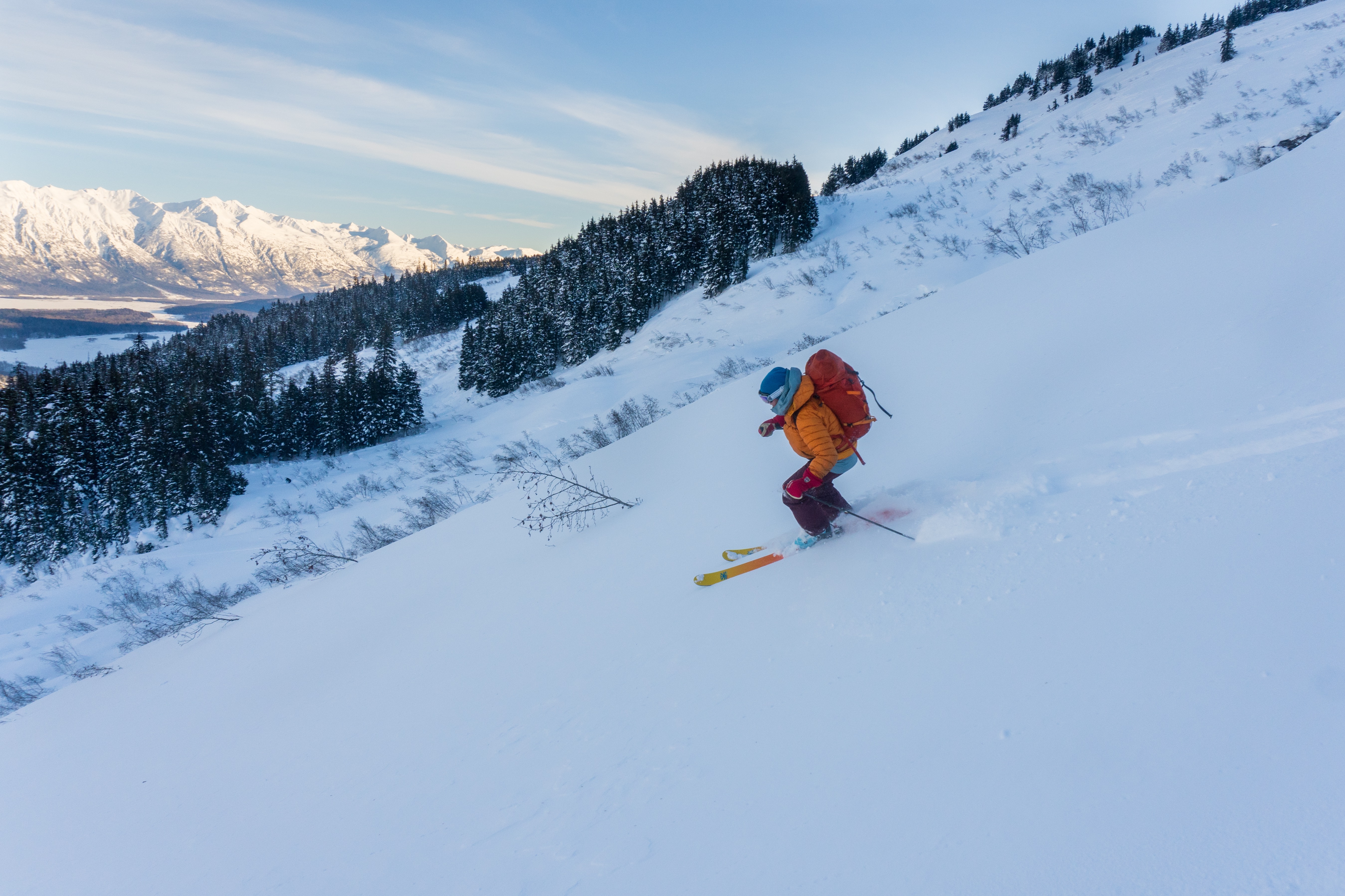 South of the boarder, we found preserved powder and decent skiing at and below treeline around 33 Mile. A generally right side up upper snowpack was sitting above a layer of facets down 120-140cm that repeated failed (sudden colapse) under moderate loads in compression tests. Uncertainty about the distribution of this week layer kept us to lower angle terrain.