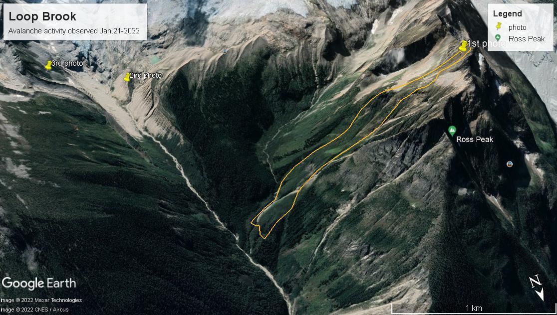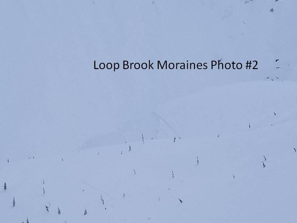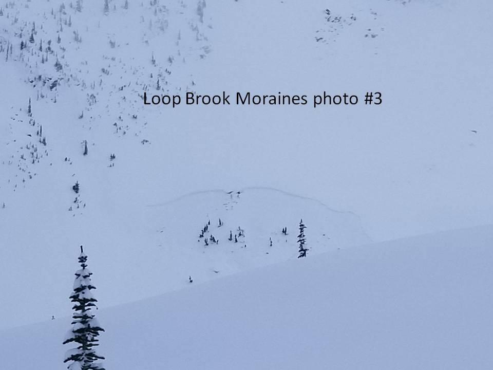 The other 2 avalanches (#2,3) were also @ 1800m. elevation - and being morainal features, you can only assume that any faceting at the crust snowpack interface would only be enhanced.