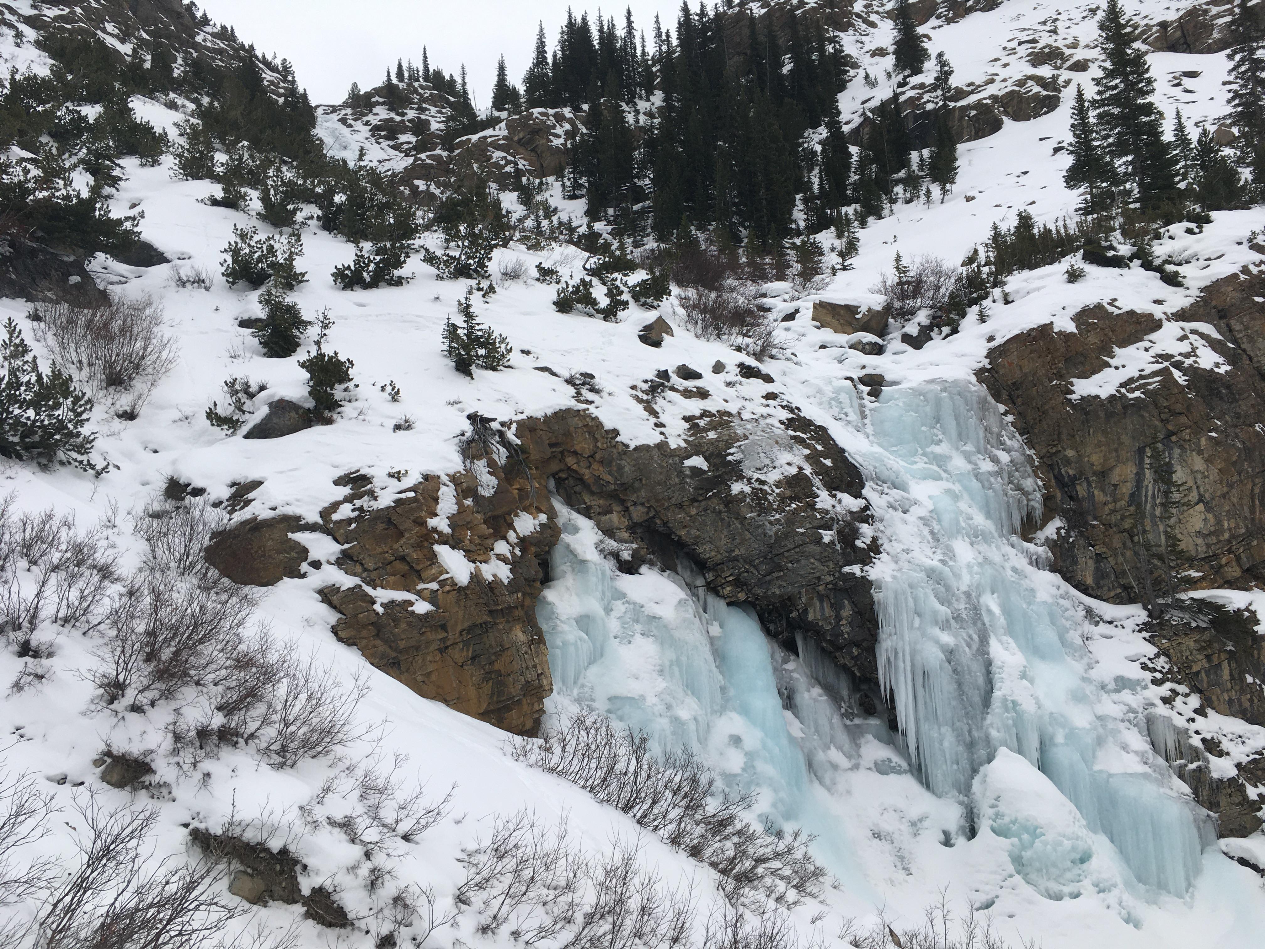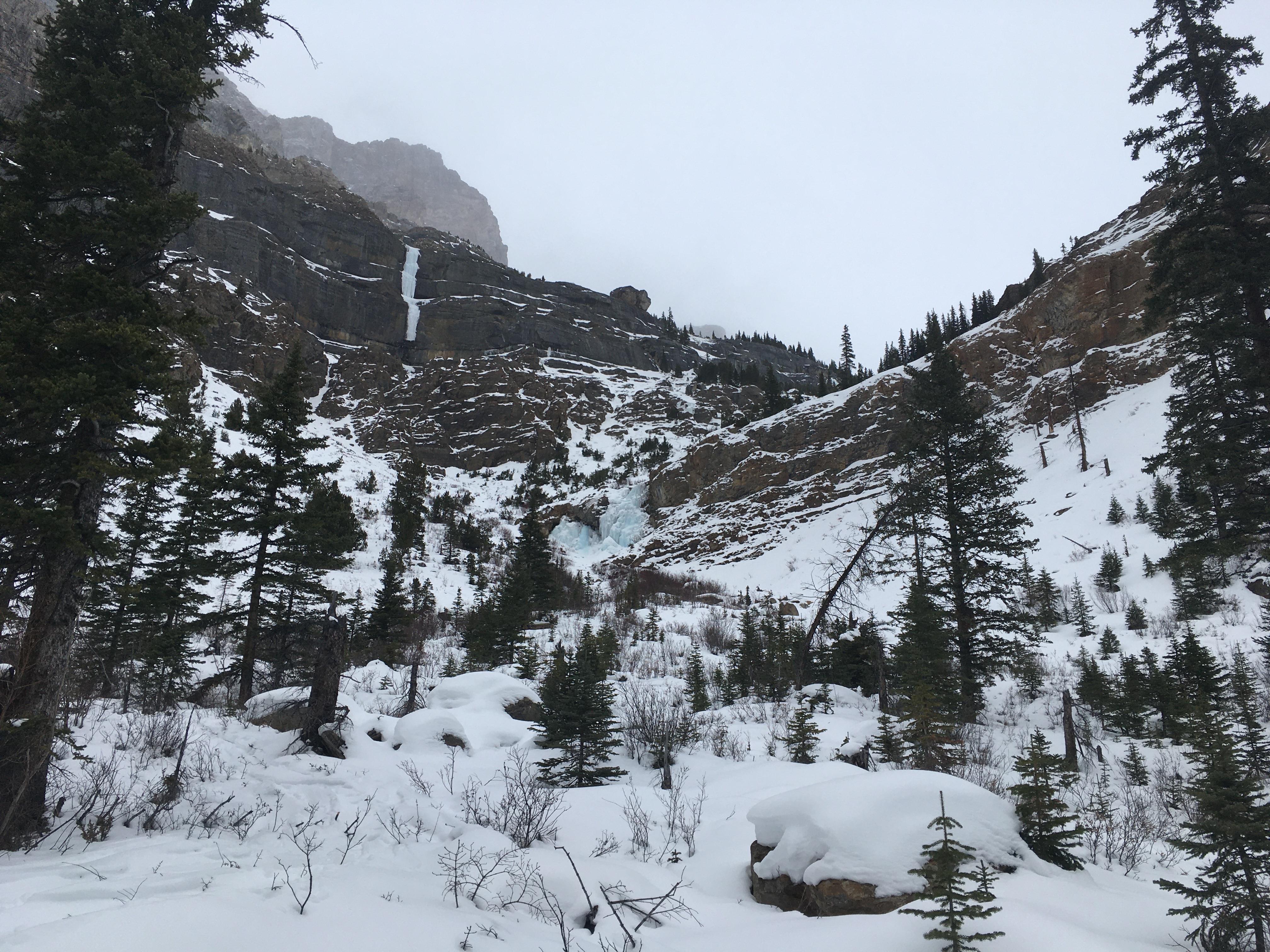 Decided to check up on the crux of the Hector creek approach today. As expected, it still needs more time before safe and efficient travel is the norm. Average HS between the highway and the crux is only 30cm with plenty of shrubbery and rocks still exposed (see pics). While returning to the road, I found a convenient road-like path through the forest on the skier's right of the main creek around or below 1900m. This would certainly be an acceptable alternative uptrack from the standard climber's right side of the creek and a slightly shorter, more direct route. One could likely find easy enough travel through the forest by staying on this side of the creek all the way up. To find this path, walk directly across the hwy from the turnout/parking and immediately start approaching to the left up the clear-cut bank to the forest and find the road-like gap in the trees. Happy trails!