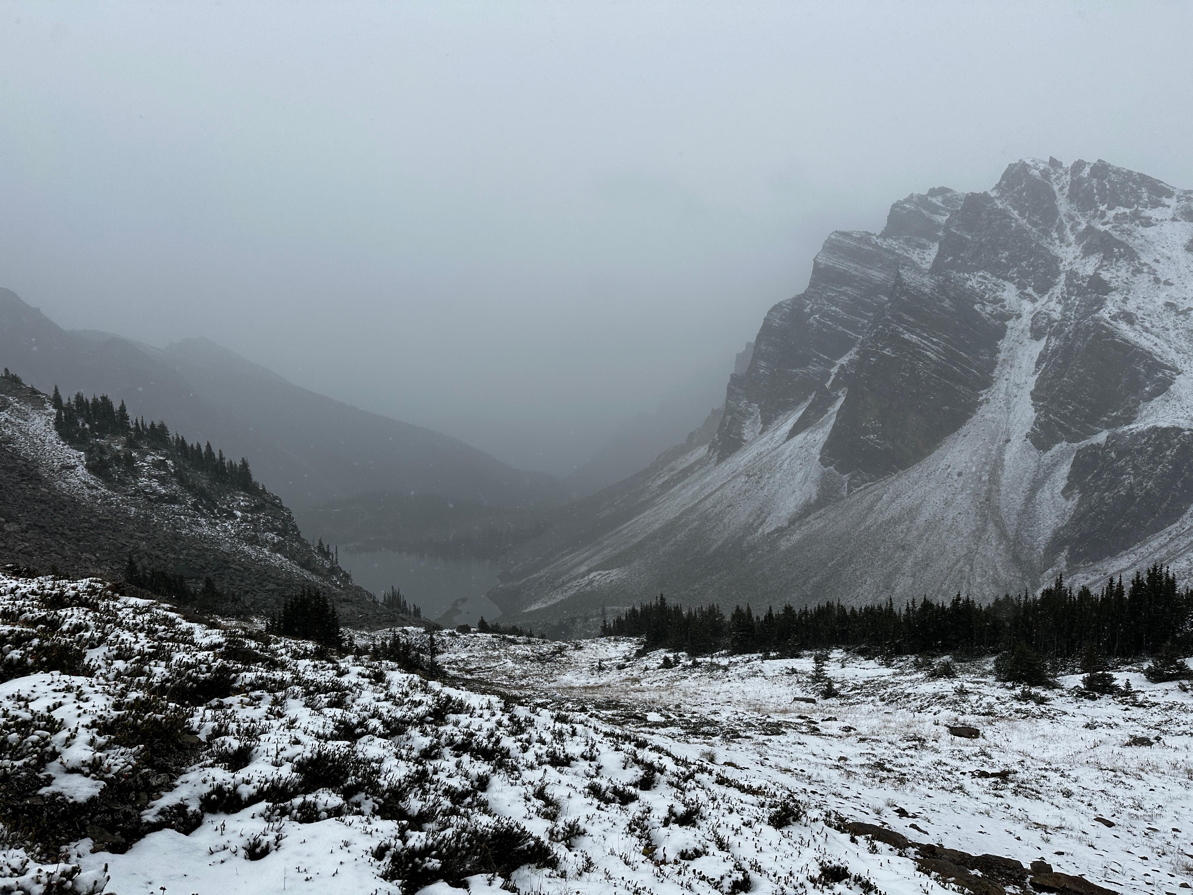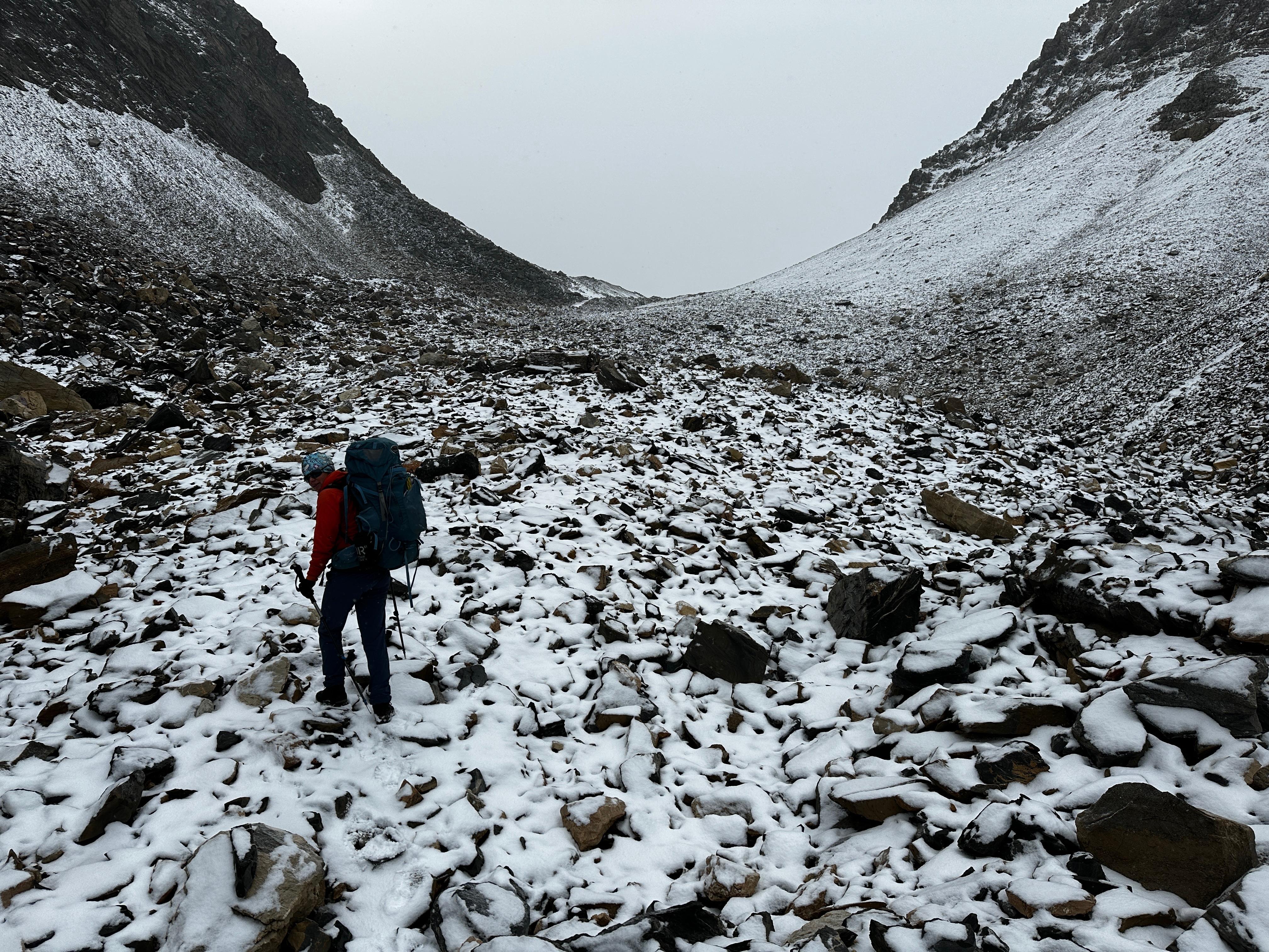 The group experienced a wide range of weather conditions from +20C and sun to -8C and blowing snow. The snow began on the 18th, making vegetation and boulders slippery and a chilly final night camping.