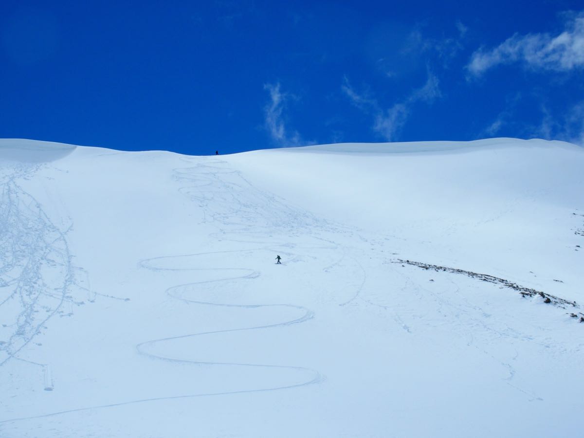 Still not isothermal condition around 2pm but very sticky snow made turns hard. Lots pin wheelings.