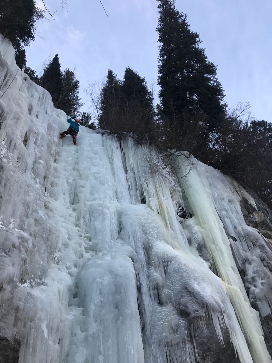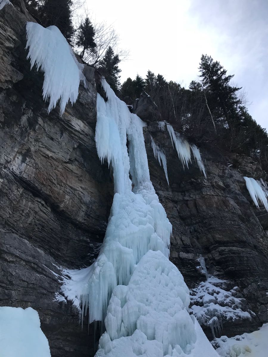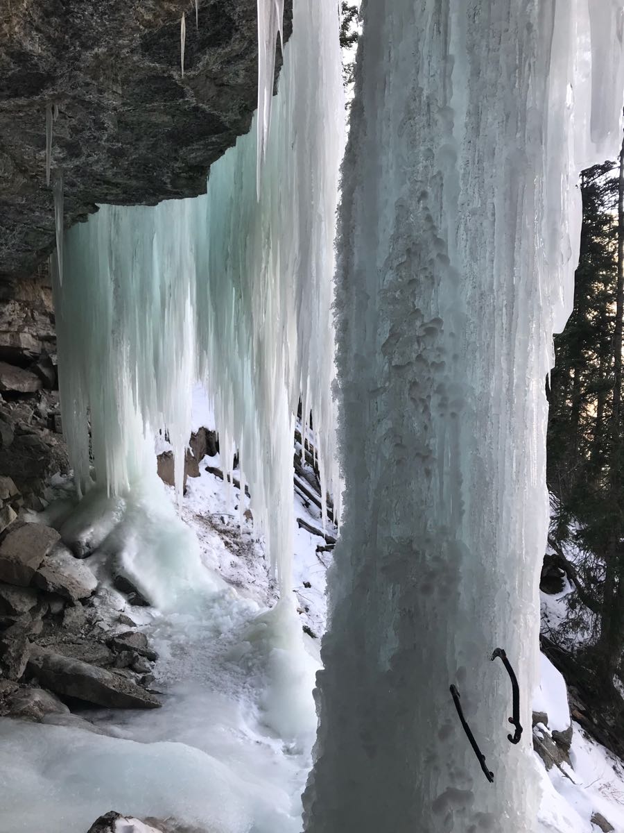 Went for a fitness morning at Vail to check out conditions. -5c when we parked at 7am and 5 when we left at 12. Conditions are generally thin for this time of year. Most notably the Rigid Designator still has a large section that has not filled in yet and has not seen much traffic. The rest is trying. With our low snow year there is lots of exposed rock and ice above the climbs so rock and ice fall is a greater hazard then it usually is.