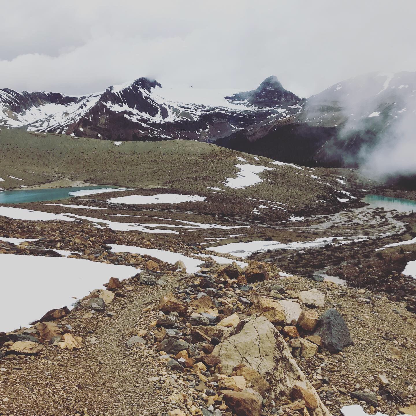 The Ice Line Trail still has some moderate size patches of snow around the high points. The trail has seen a bit of traffic and paths through the snow are getting worn in. Creeks are high, and no signs of wildlife observed today. Conditions up higher on the peaks looked like rain soaked snow, and fresh snow kissing the tops of the presidents.