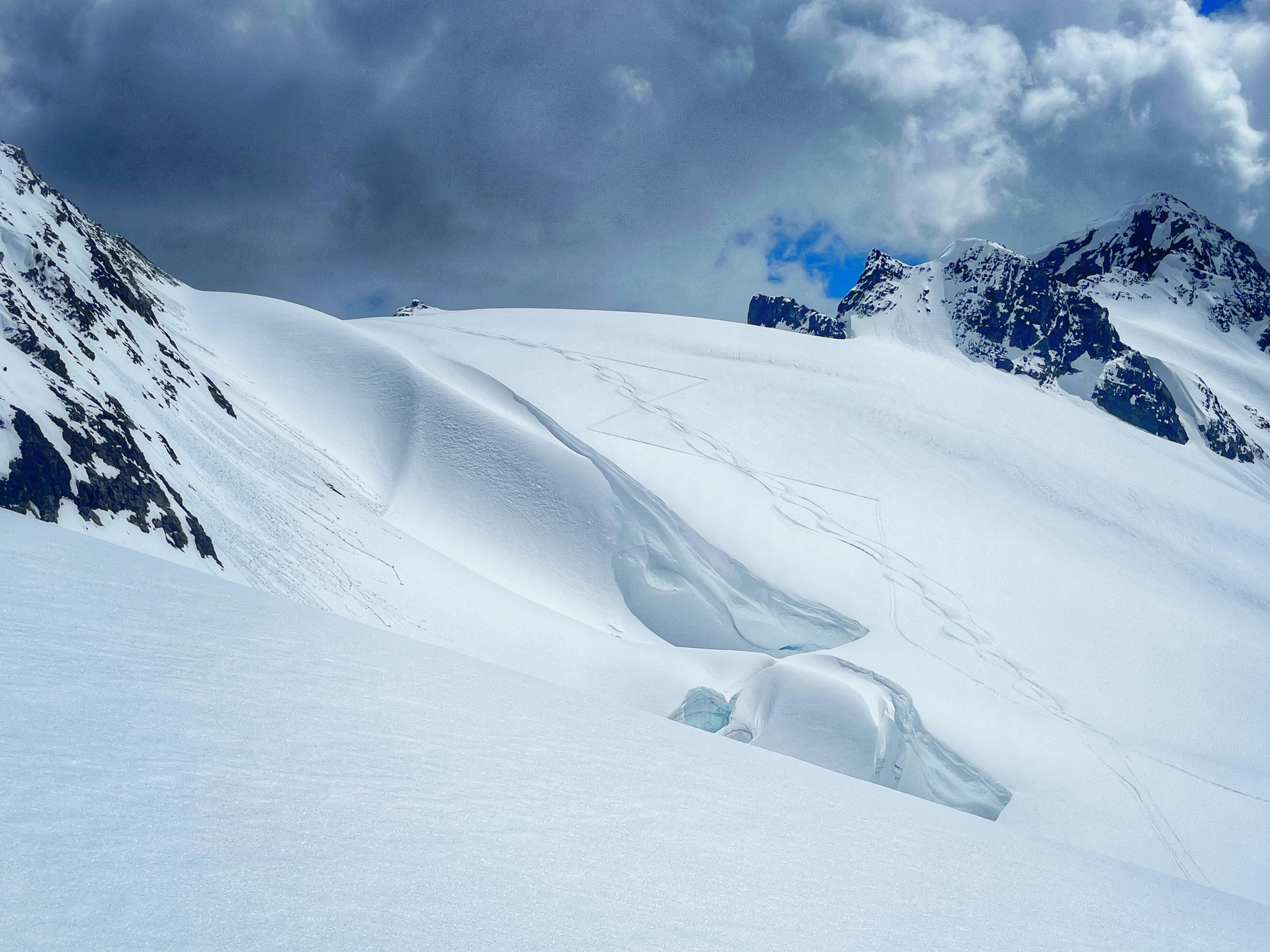 Natural avalanche activity was limited to steep south-west aspects, with a remarkable amount of terrain on the icefield remaining smooth and planar.