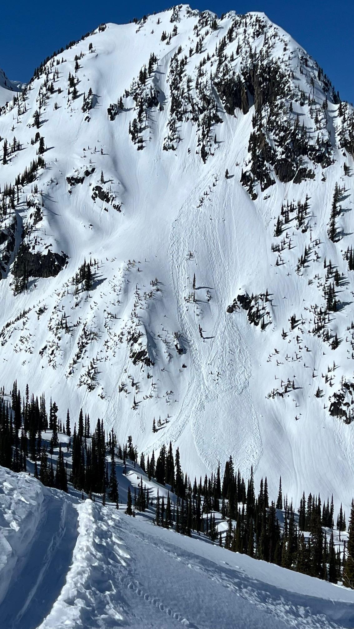 Over the week we observed wet loose avalanches to size 2 in steep rock alpine features when the temperatures were at their peak. During the storm today, we had sluffing on steep treeline features.
