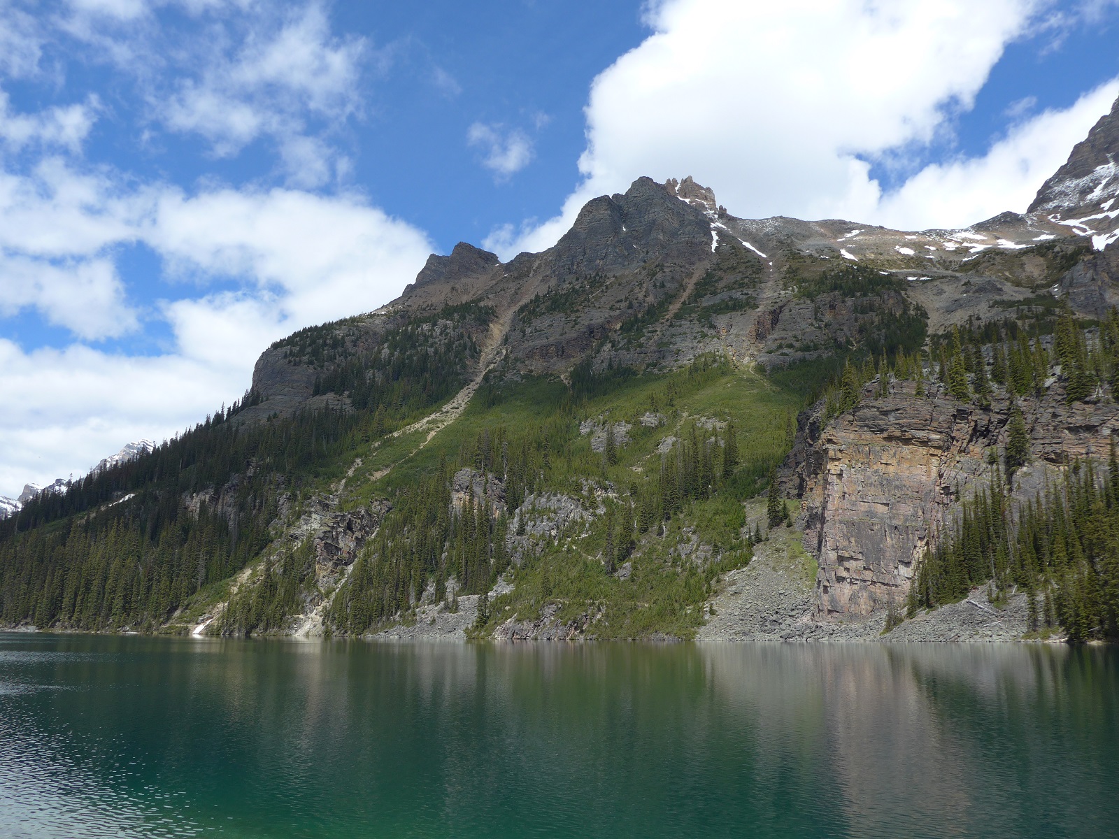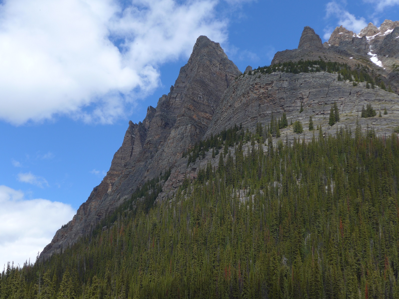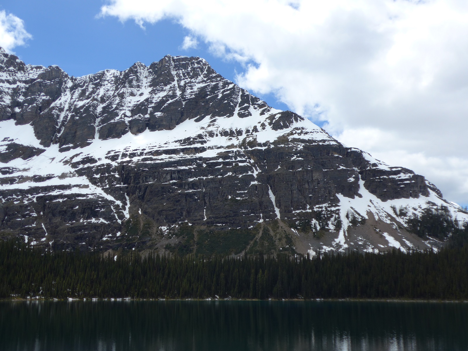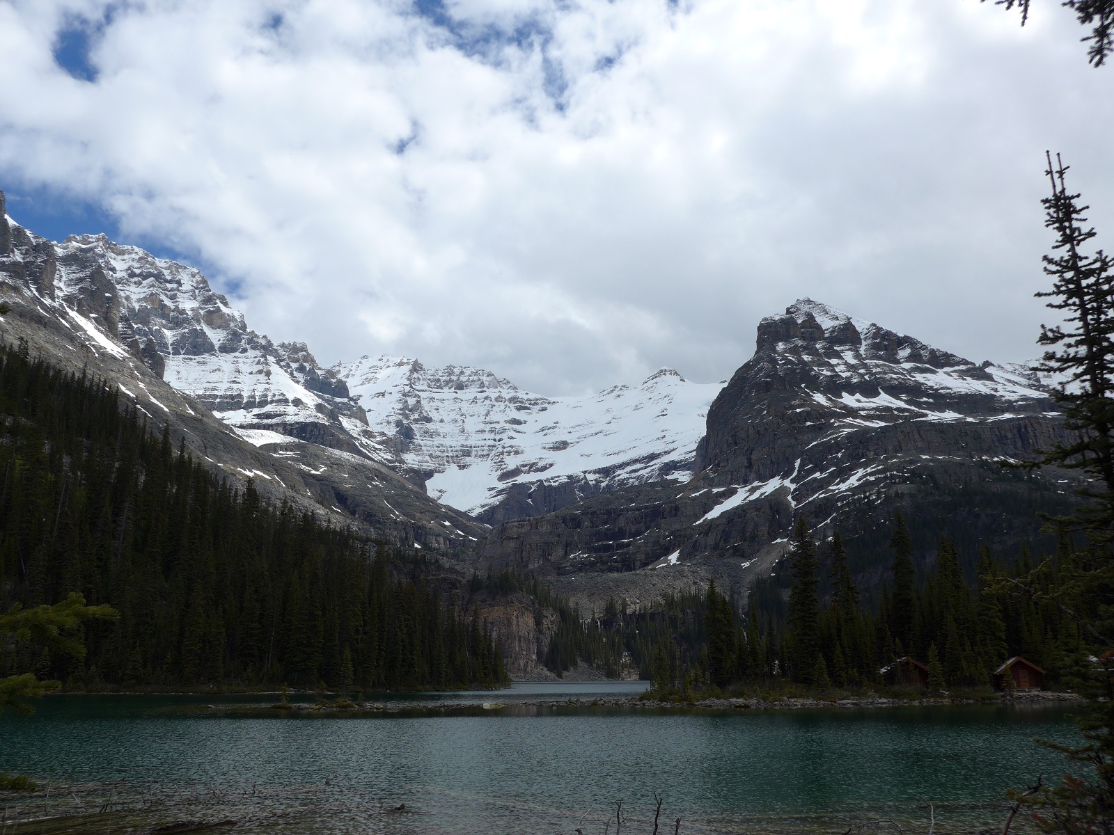 The snow and ice is all melted away around Lake O'Hara, and the valley bottom trails are mostly dry with the occasional small patch of snow. Reports are of dry trails up to the about 2300m where the Opabin plateau levels off, and a rather sudden change to a deep snowpack at that elevation. South facing slopes (Wiwaxy Gap trail) are melted dry, as is the south facing rock up to the high alpine. North facing areas and most terrain above 2500 meters is still pretty snow covered, but in general the place looks good, and well ahead of schedule for the time of year. Nice time for Lefroy or Glacier Peak while they are snow covered and after a good freeze.