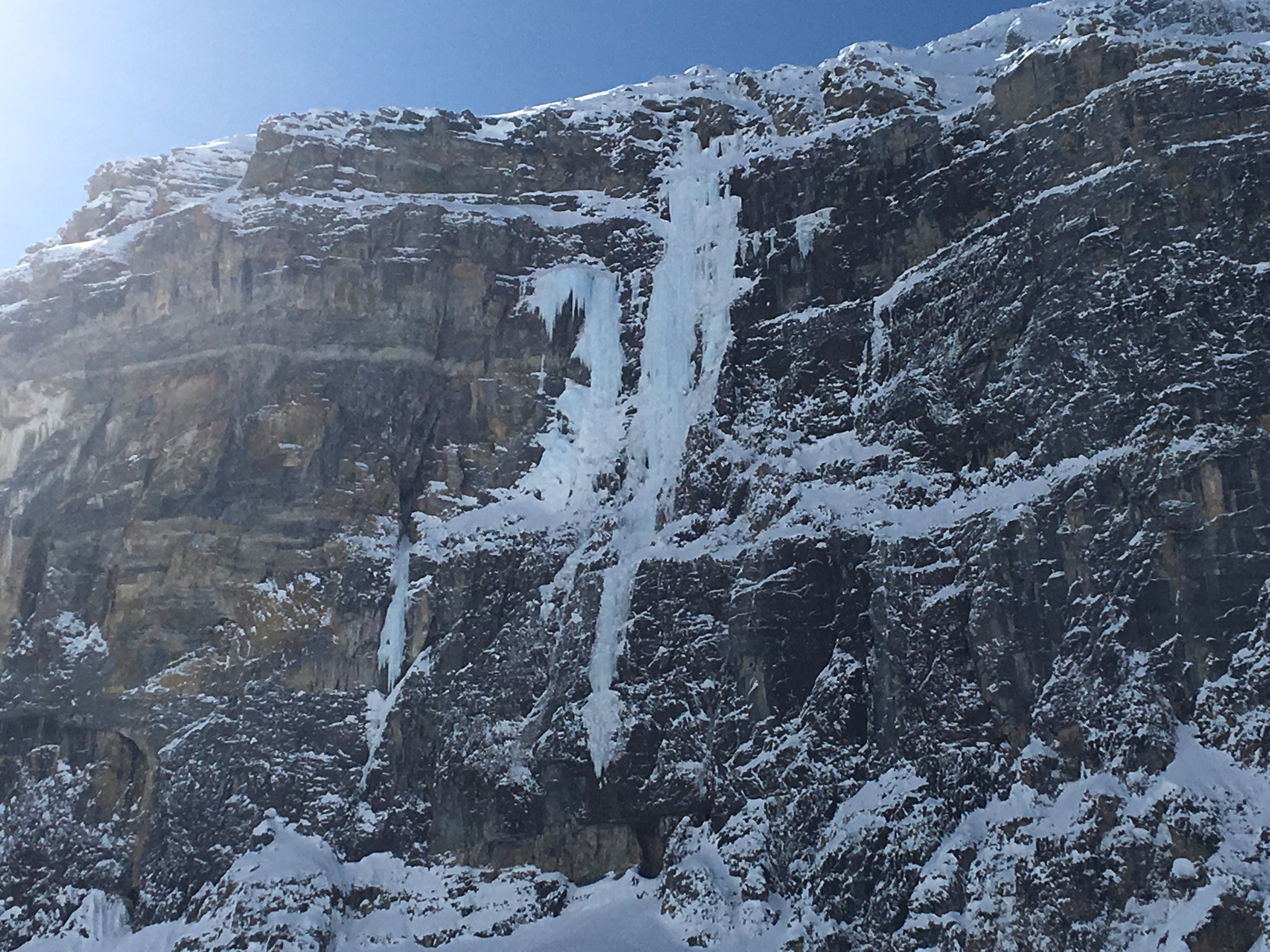 On Saturday, March 31, I skied into the Stanley Valley with friends. Pictures of Suffer Machine and Nemesis attached. Good skiing on the slopes below Two Step Gully.