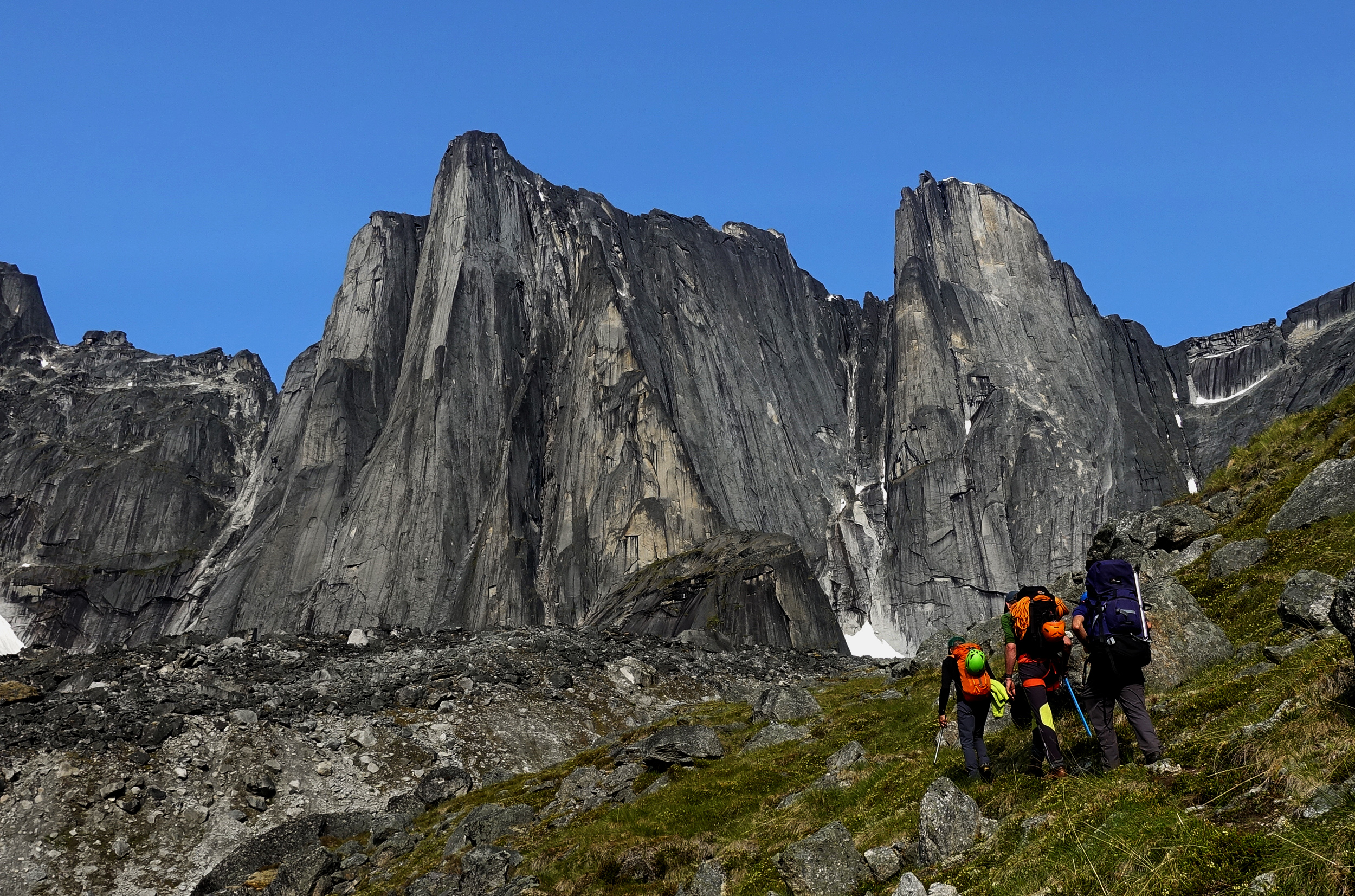 All in all, a fantastic route in remote setting on a very appealing rock feature. That said the relatively moderate climbing ratings are not to be taken lightly. Everyone in our group thought they could have been higher by one number grade on several pitches. The nature of the climbing, and availability of protection also contributed to a challenging but interesting experience.