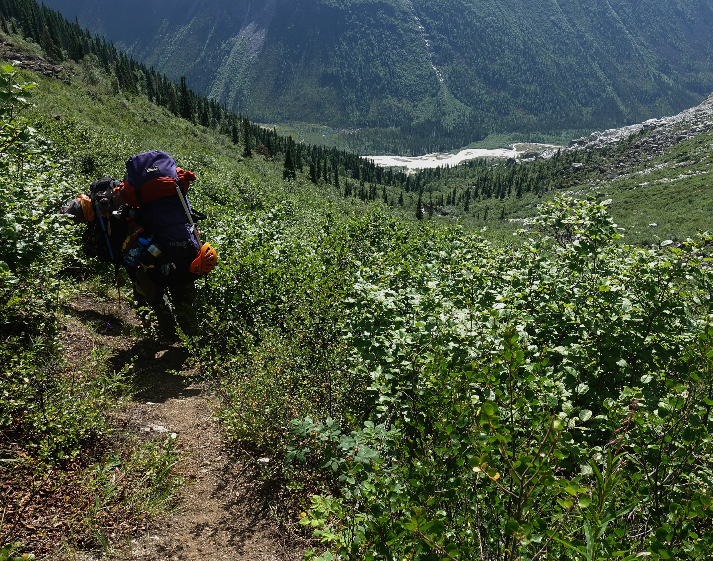 The new trail from Glacier lake to Fairy Meadows was in good condition. It is narrow, steep and becoming overgrown however, it is much better than the previous access. That said, it still took us 5 hours to hike-in to Fairy meadows with 1 week worth of gear and food. Parks Canada has recently built a small cabin at the trailhead by Glacier Lake with proper food storage bins. This first come-first serve cabin is a useful addition before or after your trip, it sleeps 6 people comfortably. The Fairy Meadows camp sites, food storage areas as well as the various trails/routes leading to most climbs were already snow free and in good shape. Crampons and ice axe were not required. Mosquitoes & black flies were very active during our visit; head nets were a blessing.