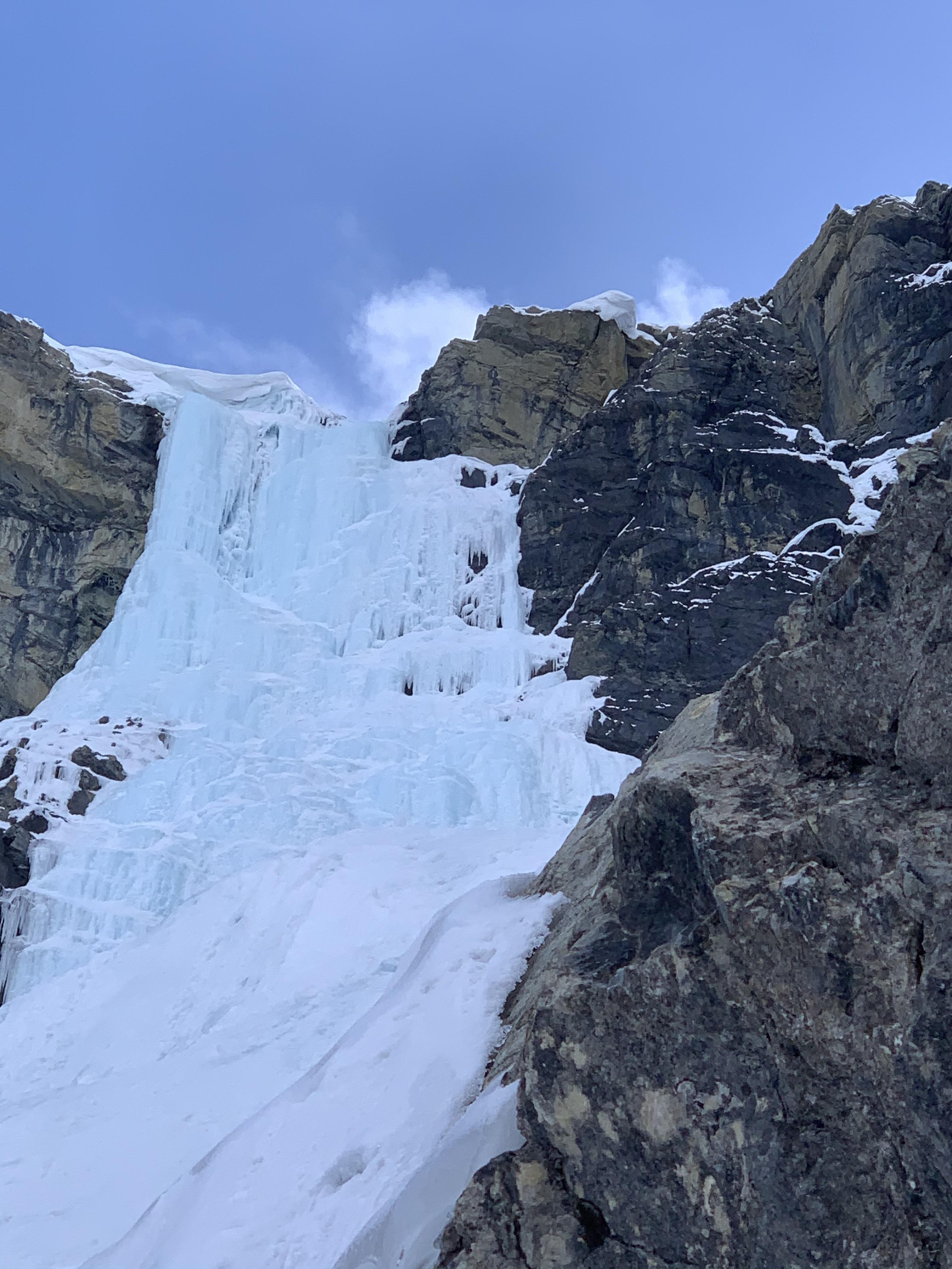 We did end up sneaking over for a quick lap on “My Daddy’s a Psycho” which was not as exposed as Murchison Falls and we were out before it got too warm. It was brittle and required careful route finding with freshly formed ice from the previous days melt.