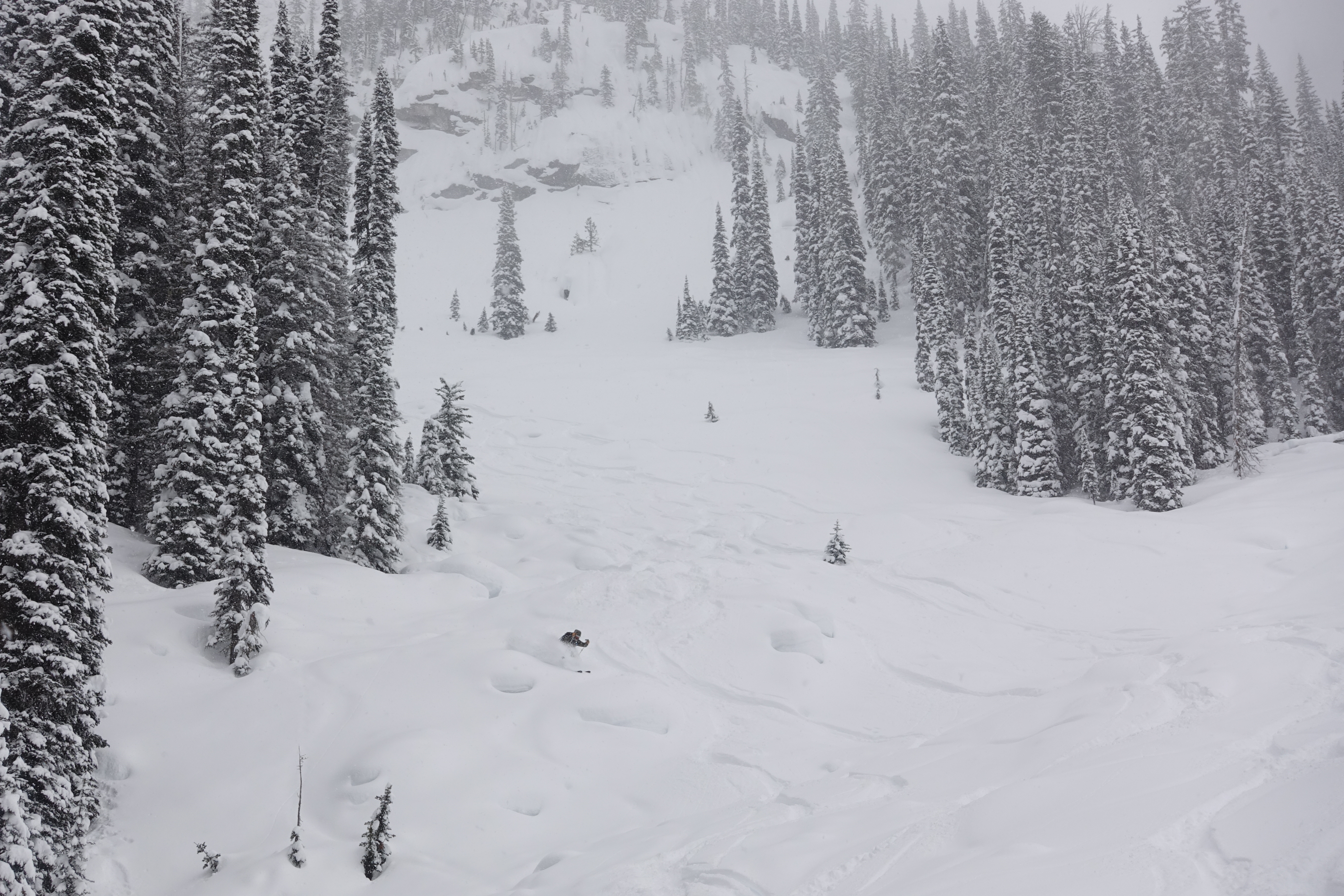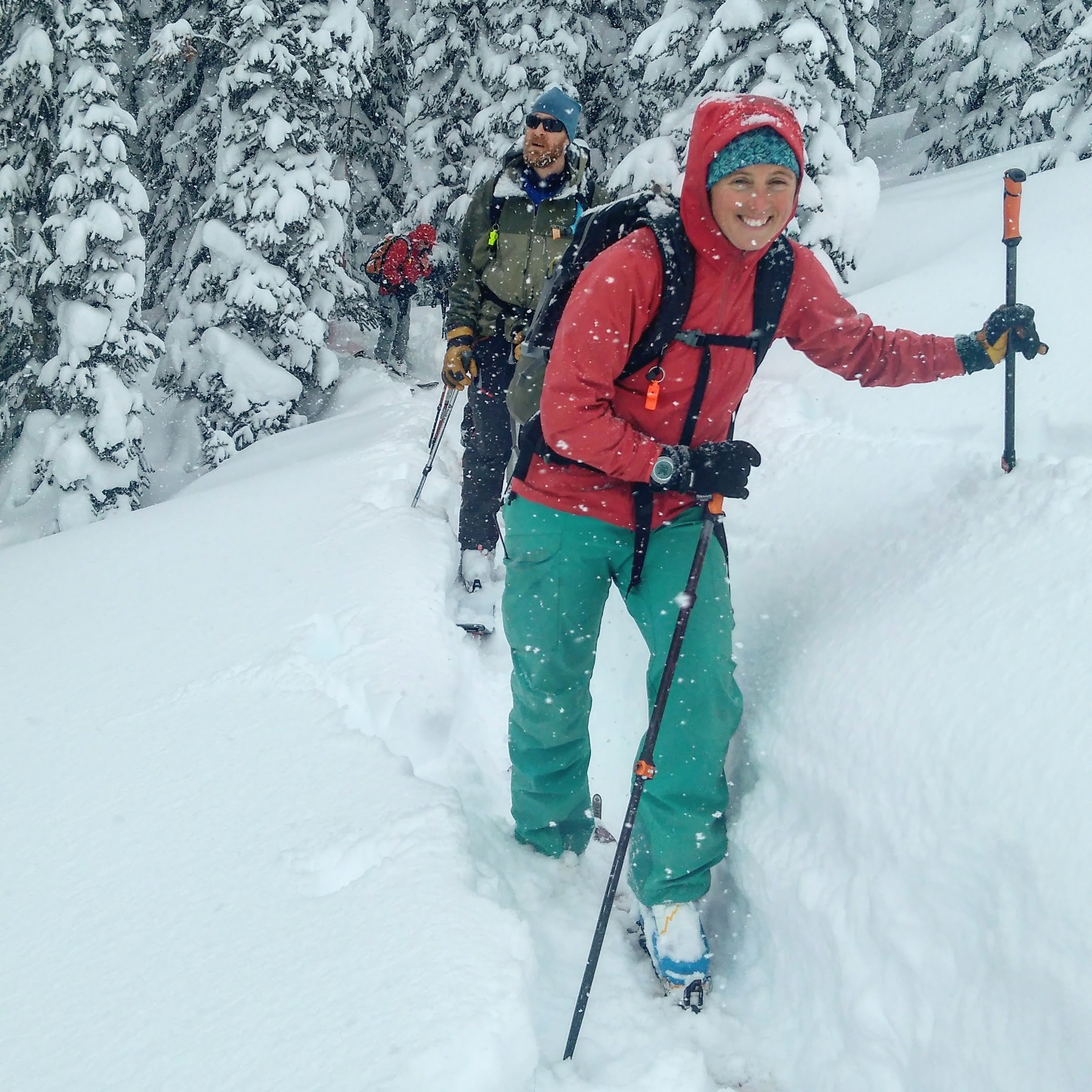 The skiing was excellent low-density pow on all aspects throughout the week. We skied from 2400 m down to 1400 m. With the more settled weather of the last couple of days hazard has been improving, down from High in the Alpine for the last half of the week to Moderate currently. The persistent weak layers of January are now buried 150-200 cm and not a concern right now. The main concerns in this area now are the suncrusts on steep solar aspects (the Feb 23 PWL) and storm/wind slabs.