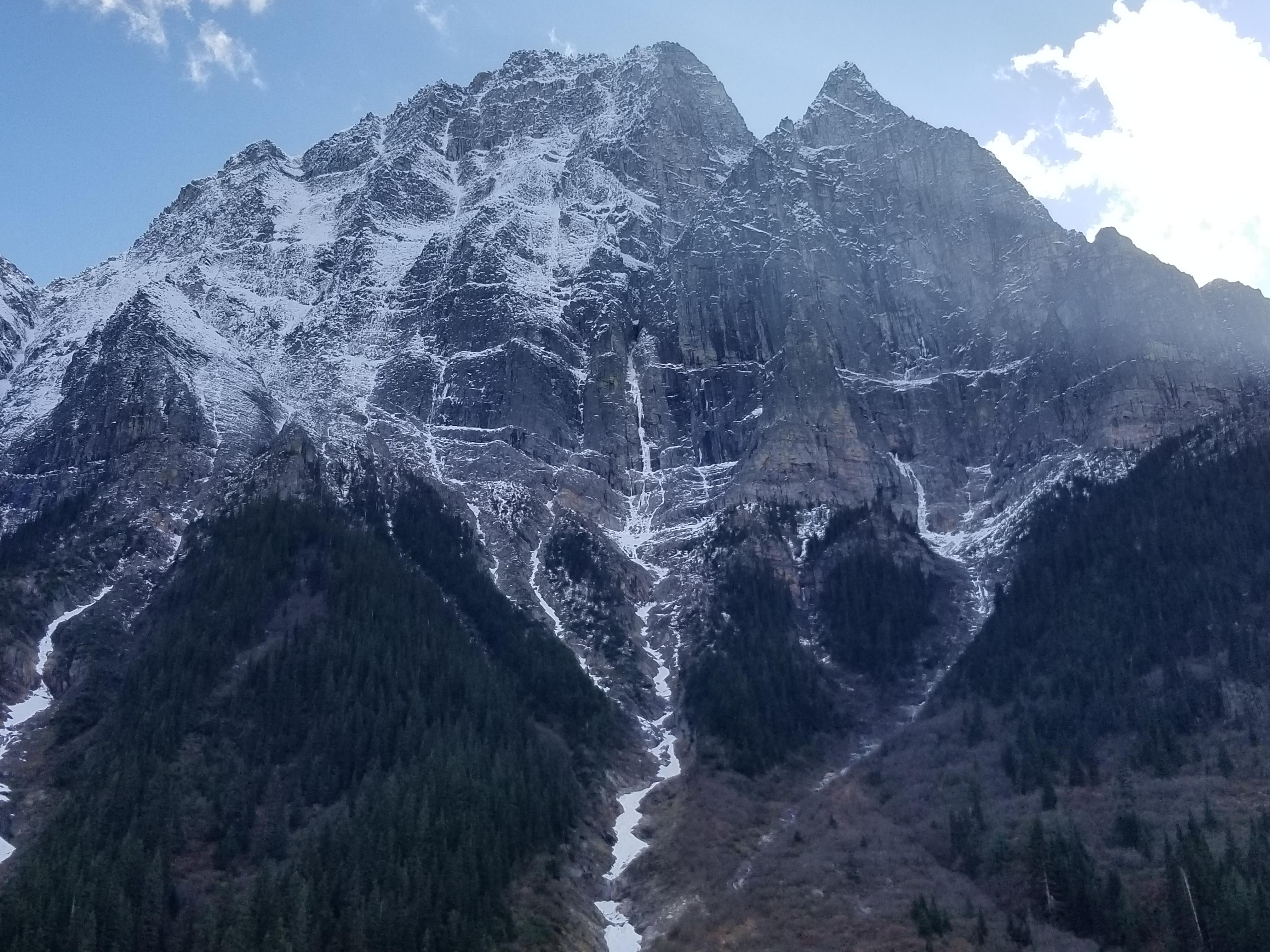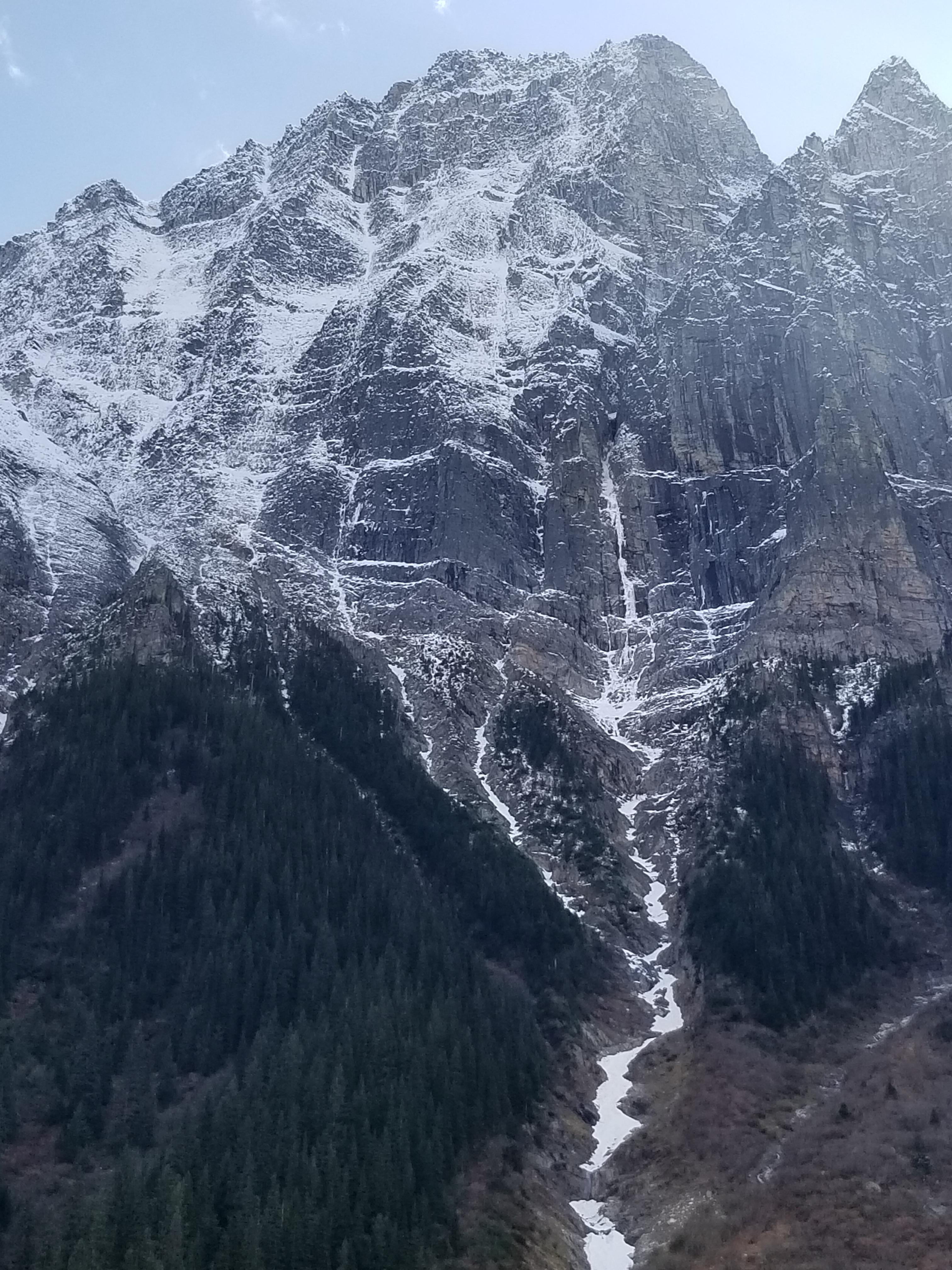 Next, there have been a number of folks inquiring, "Hey, what does the N face of Macdonald look like? Is there much ice?" See the attached photos to decide if there is enough for your psyche level to give it an attempt. With the Glacier National Park Winter Permit System still over a month away, limited amounts of snow/cornices overhead, and a decent forecast for the next 3-4 days, perhaps there are a few keen folks that would like to scratch their way up it?!
