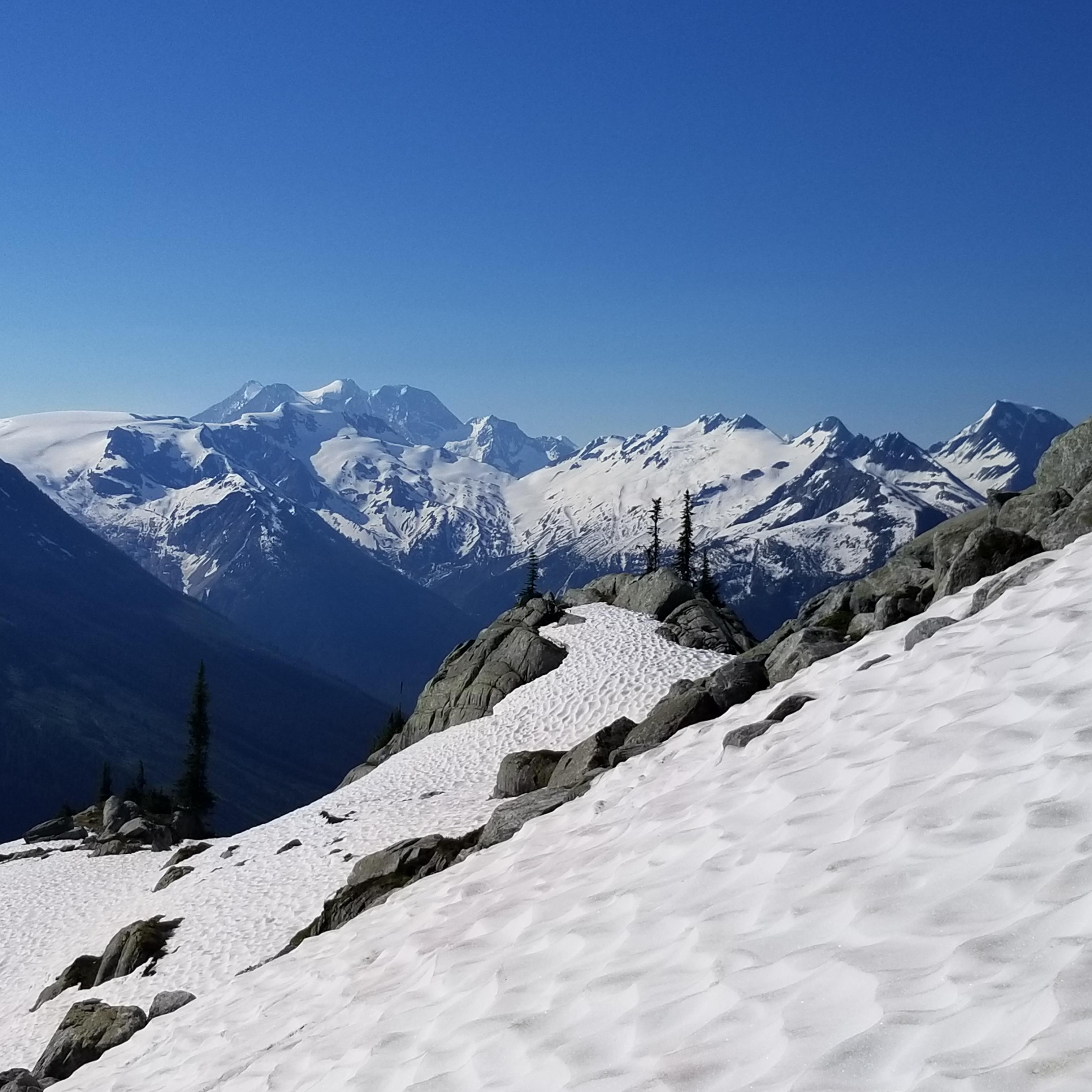 The snowpack around Rogers Pass is rapidly shrinking, but this doesn't mean it is all gone. As of this morning, there was 85cm at 1900m (Fidelity Station). Meanwhile, the Hermit Campground (~2100m) is still completely snowbound but the trail leading to it is snowfree except for the final 50m to the plateau. Overall, expect minimal snow up to ~1800m in Glacier National Park, but then extensive snow coverage above, especially on northern aspects or in open basins/slopes.