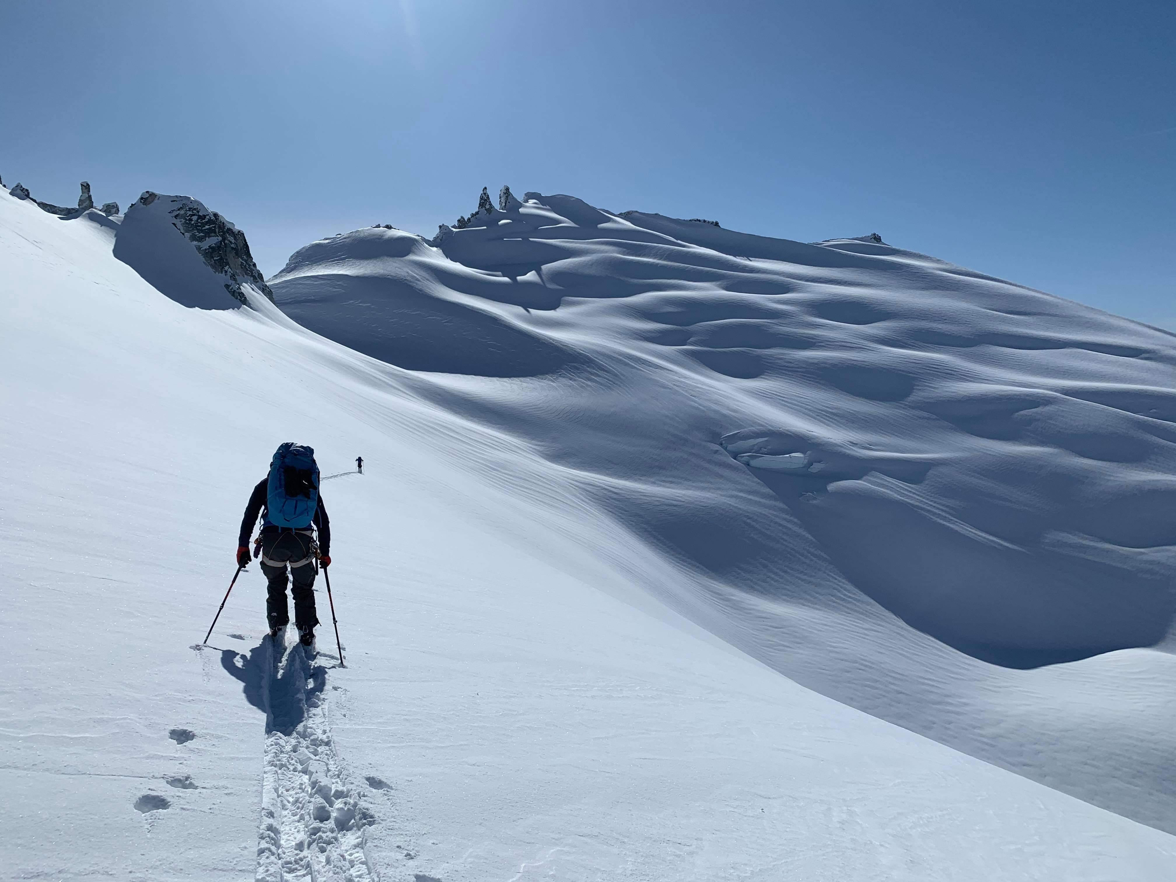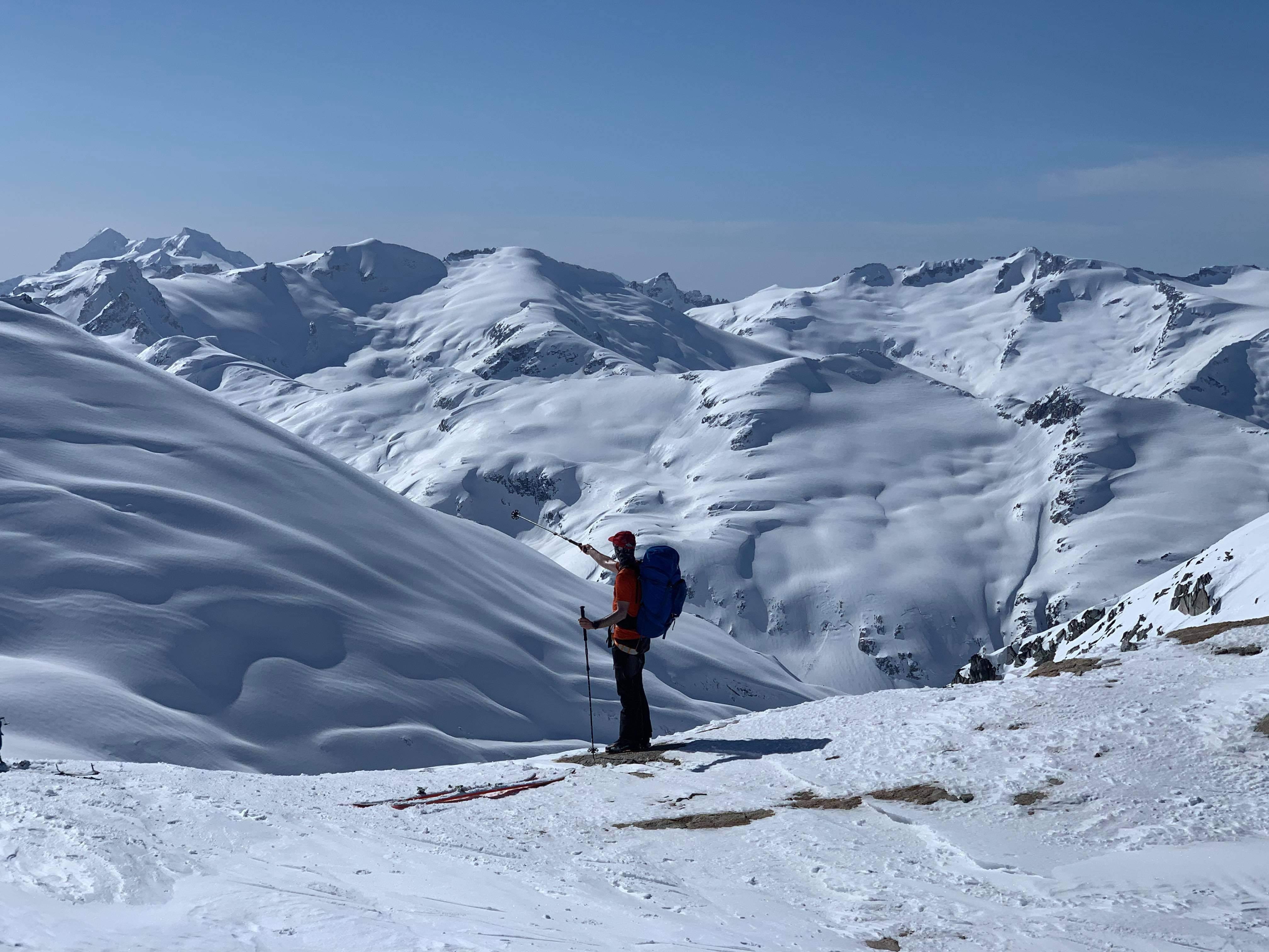Conditions: 10-15cm of snow fell on the day of March 13th and provided easy trail breaking and good ski quality on Northerly aspects. Solar aspects crossed in the mornings had very good overnight recoveries and ski crampons were used.