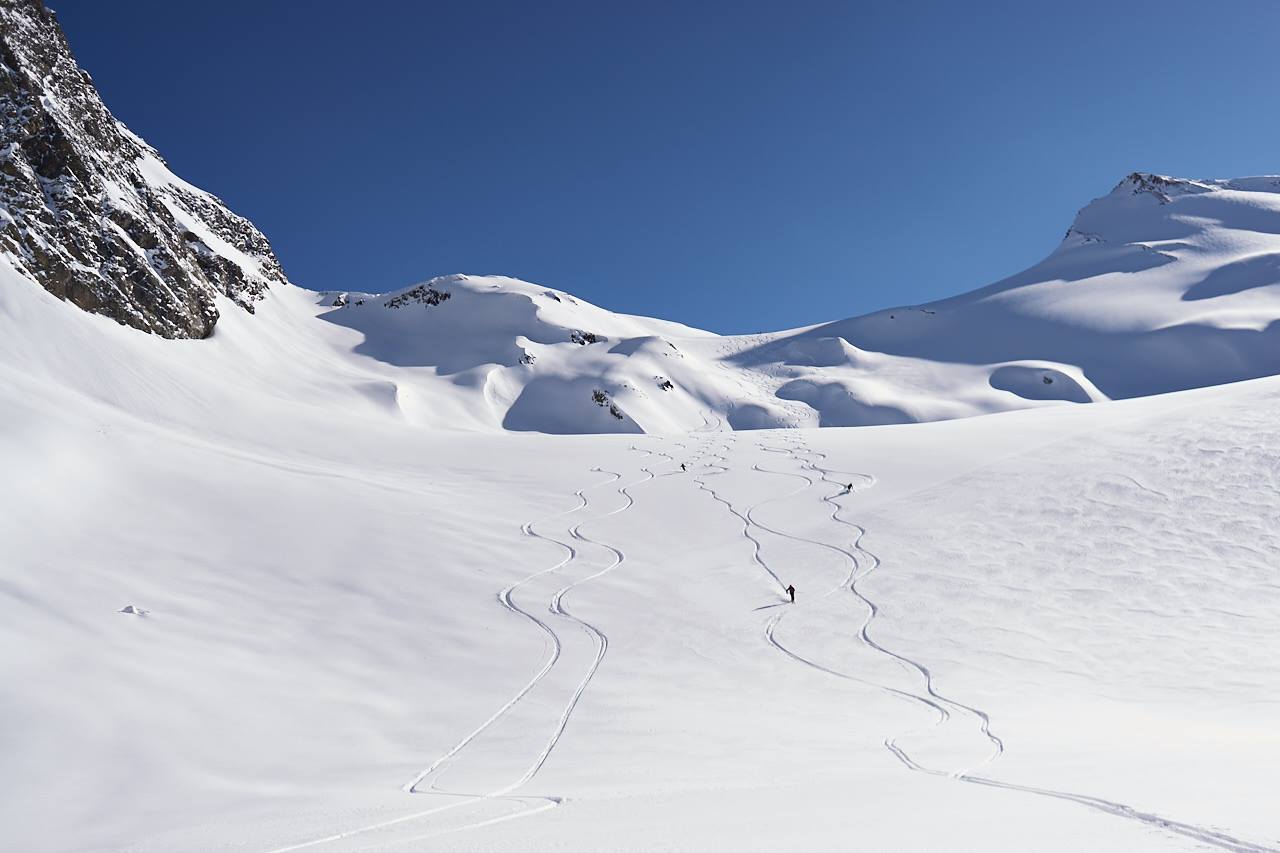 On 16 February we skied in the Laila range, mellow north facing slopes to 2500m. At 2340m I measured an HS of 180cm. Skiing quality was good, but a slight sun crust was notable while skiing.