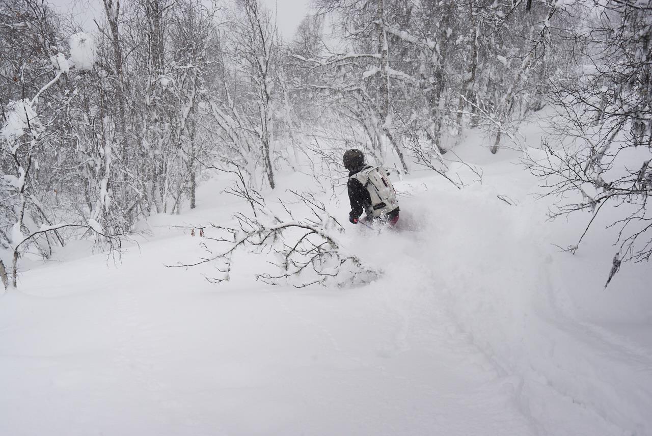 After substantial snowfalls (ca. 40cm HST) during the night 11-12 February and in the course of 12 February we skied the trees around Hatsvali ski resort. Any unsupported roll tested reacted to ski-cutting, so we skied in densely forested terrain only. On 13 February we skied on the mellow SW-facing slopes that lead to Gul pass (to 2600m), avoiding slopes over 30°. Mild temperatures (plus degrees in Mestia at 1500m) lead to notable fast settlement of the new snow. Skiing quality was good until ca. 2200m, where the snow became moist.
