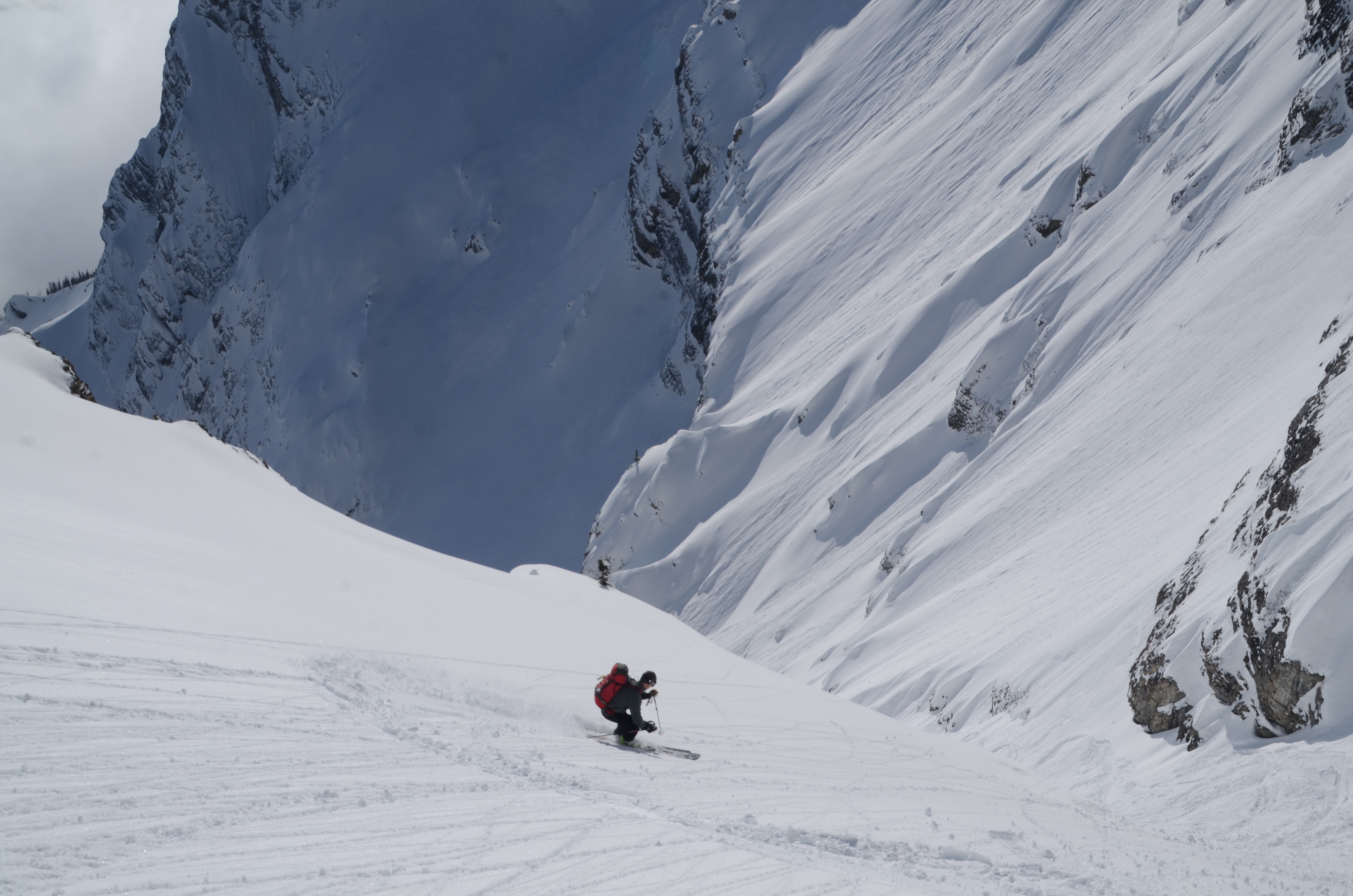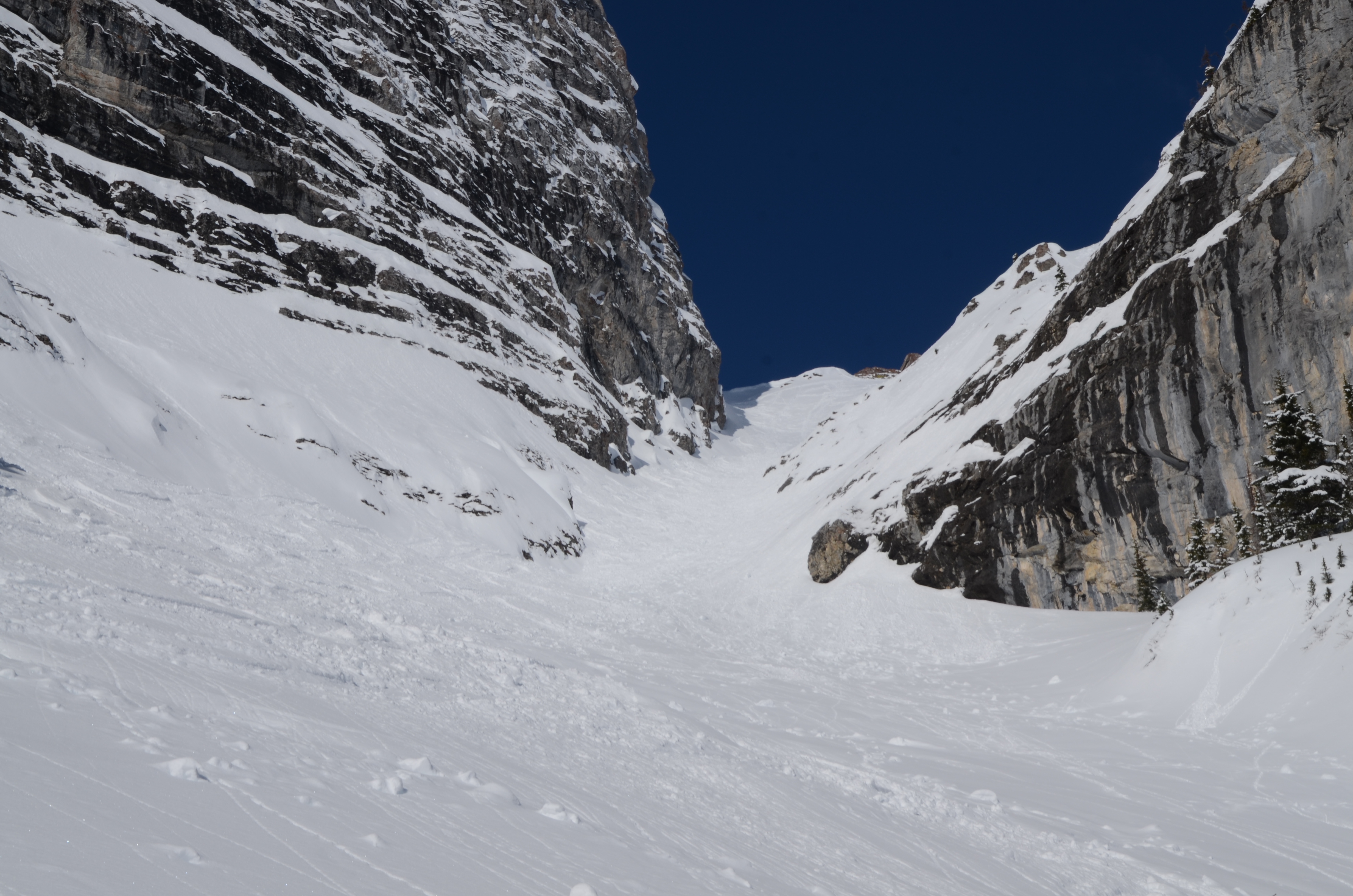 Lots of previous sluffing out of the steep cliffs skier's right of the gully but otherwise no evidence of avalanche activity.