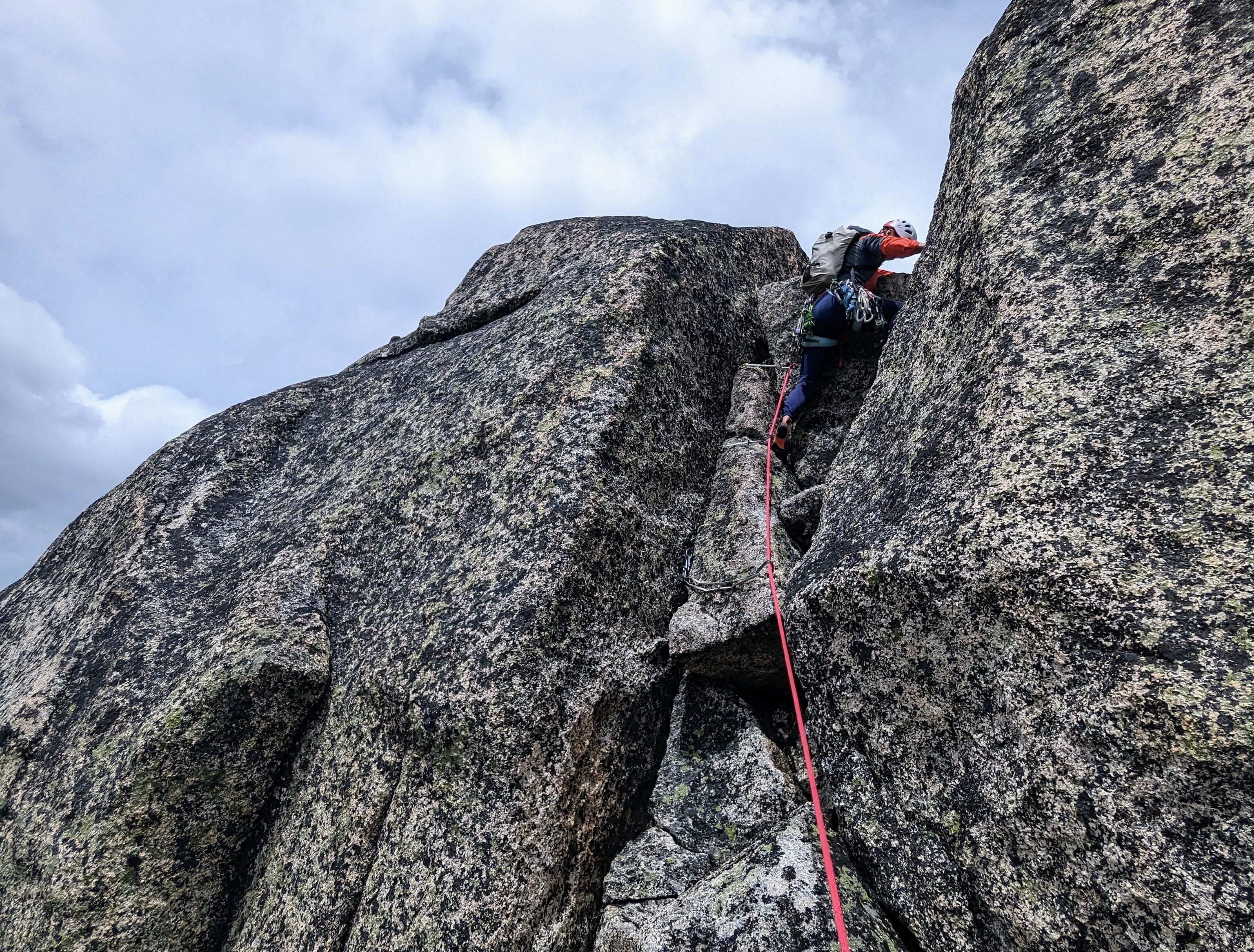 We accessed the area via Wall Creek and climbed the Matriarch - Macabre - Grimface ridge traverse (MMG). It was warm on Monday, got cool and windy on Tuesday, and rained a bit overnight into Wednesday. As we left the area on Wednesday, there was a skiff of new snow on the high peaks. This should melt very quickly.