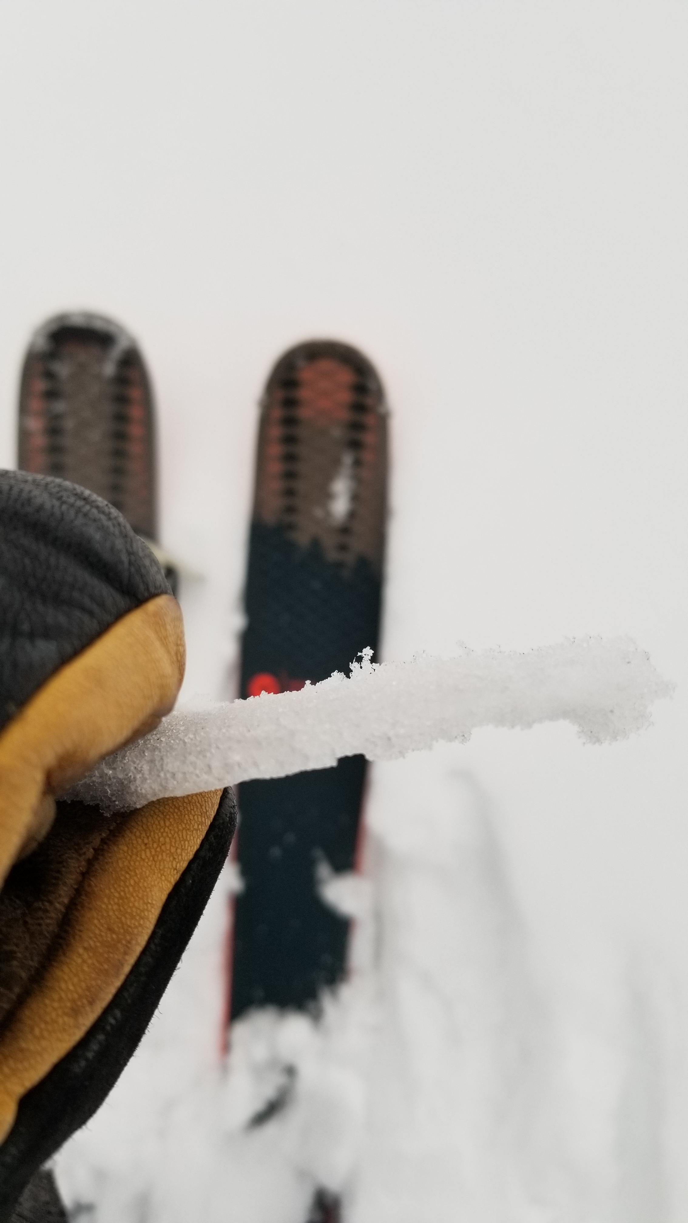 Bad skiing(okay actually terrible!) with a stiff breakable crust sitting on the surface(see photo)
