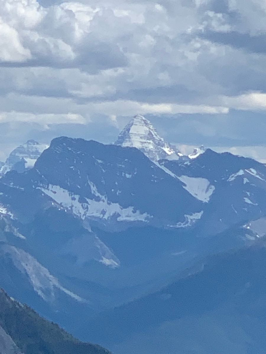 We also climbed Mt. Lorette July 8, which was dry. We could not find a shallow spot to ford The Kananaskis River so we opted for the bike approach along Stoney Trail.