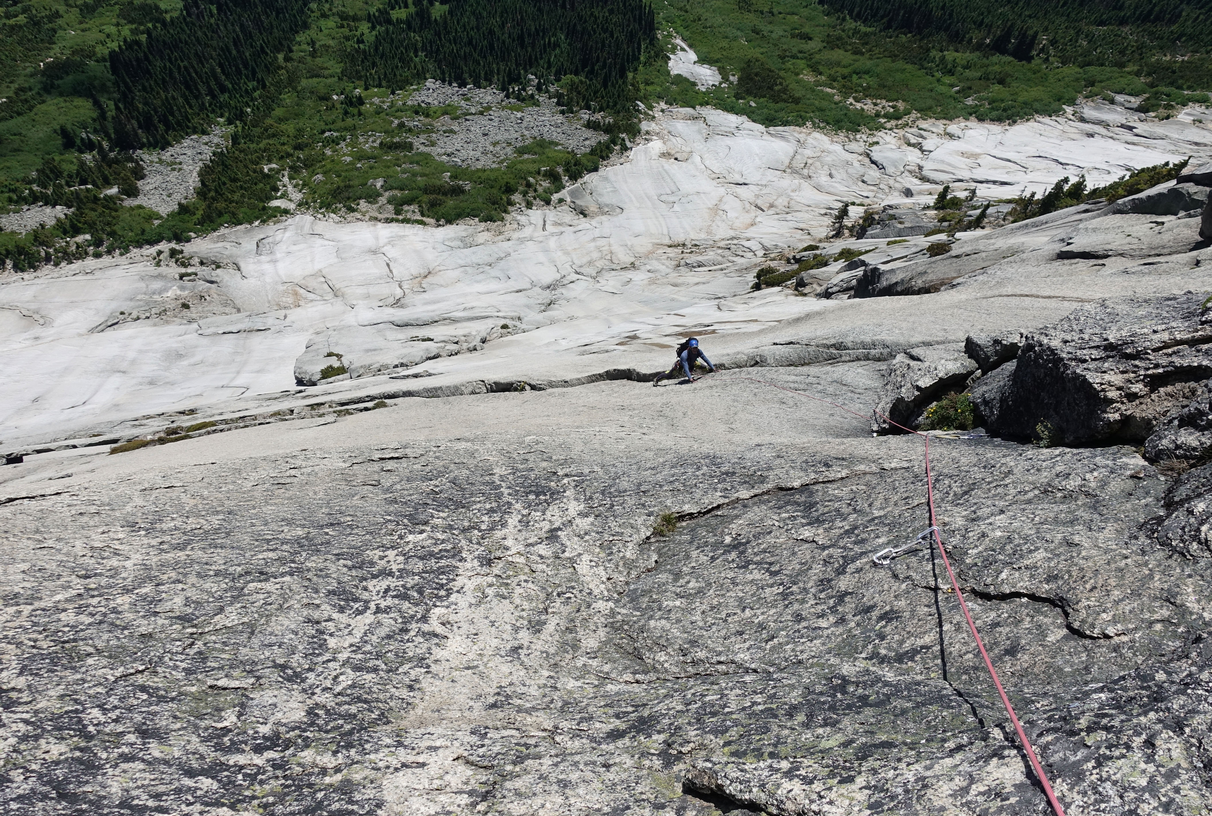 I guided an ascent of Yak Peak via "Yak-Check" (650m, 5.10a) today July 21, 2019. We had sunny skies, a light breeze and temperatures in the 20C range. There were many hikers on the scramble route but we were the only climbers.