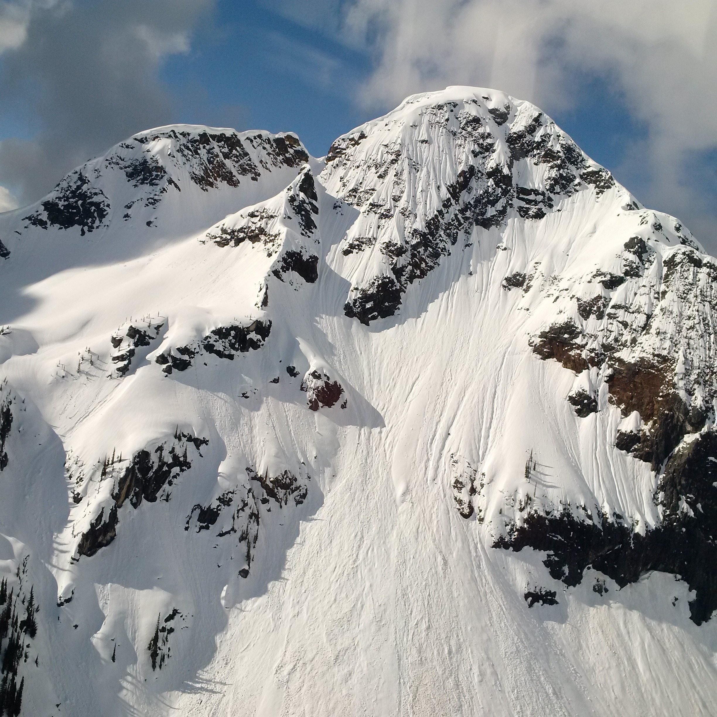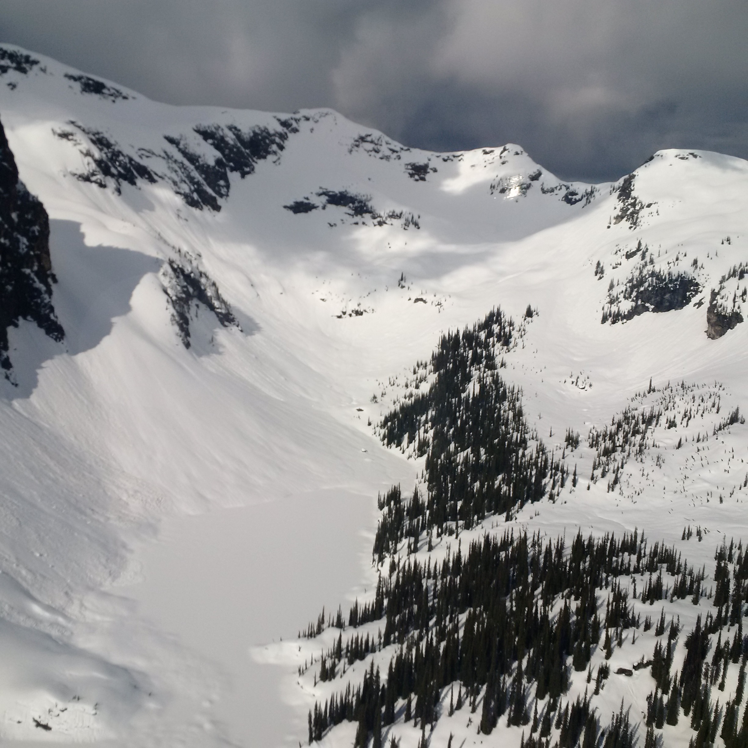 Parks Canada Visitor Safety was flying in Mount Revelstoke NP yesterday and observed a wintry scene at tree-line and above. Average snowpack depths around 2000m were between 275cm and 300cm, so there is still a lot(!) of snow in the alpine. Any aspects that had received sun, even early in the morning, were isothermal and it was easy to skier-control loose, wet avalanches to size 1 on small slopes. All larger solar aspects were completely avoided. Slopes that hadn't received sunshine yet had a supportive crust that made travelling easy without ski crampons.