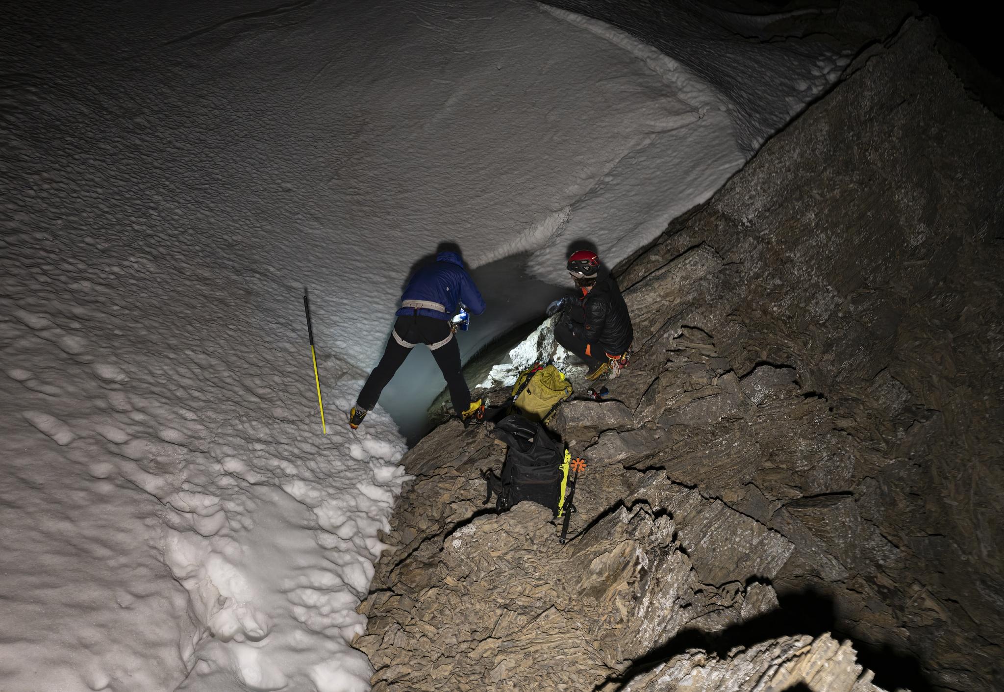 The first 70 meters of the face still holds 80cm of snow. (Shovel handy to dig a good v-thread on the way down).