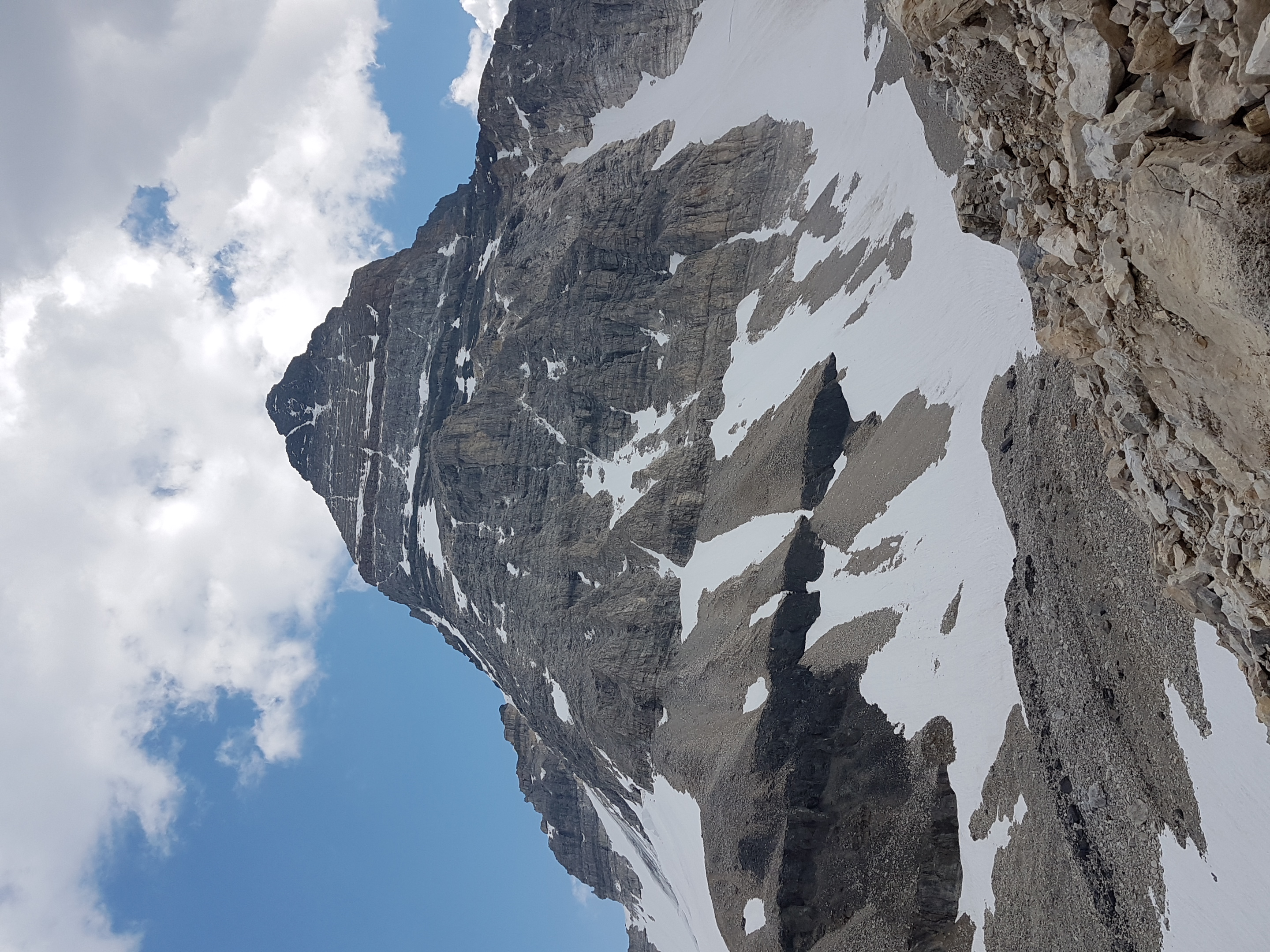 On the evening of July 20th the mountain was plastered with a fresh layer of snow from the passing storm as the freezing level overnight was just below the hut at about 2600m. Given a day of clear weather it should be back in dry condition once more.