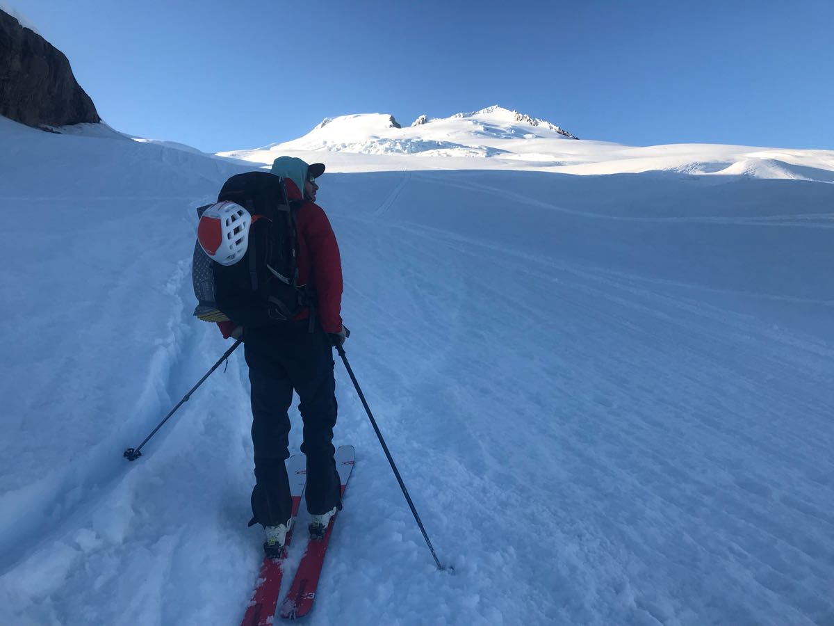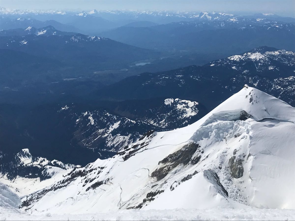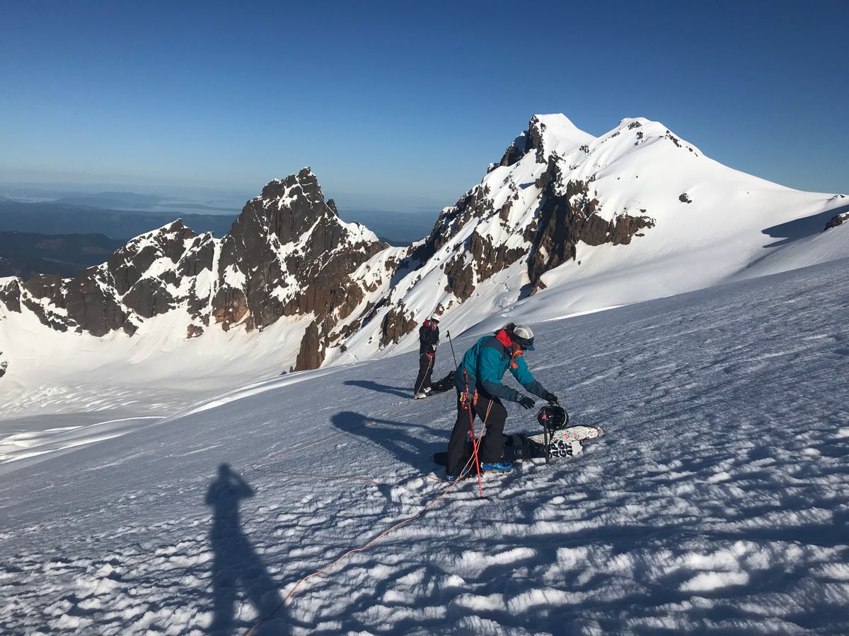 In the morning we had a good refreeze at 6600’ and above, and had fast conditions up the glacier to about 9000’ where we switched to boot crampons. We could have used ski crampons maybe another 1000ft if we’d had them but I think most people would prefer boot crampons for at least the Roman Wall itself. We climbed 3.5 hours the first day to camp, and 3.5 hours to the summit on Friday. The Roman wall was carvable, the glacier was good corn at 10-11am, and bellow camp was unfrozen slush. Again the snowmobile tracks that’ve packed down the trail speed the exit, but also make for some bumps. Lots of folks headed up the mountain Friday afternoon including a large all-female group with She Jumps, and a large group with Baker Mountain Guides guiding the first ever sit-ski ascent and descent of Mt. Baker. Good luck on the mountain everyone! PNW volcano ski season is in full swing.