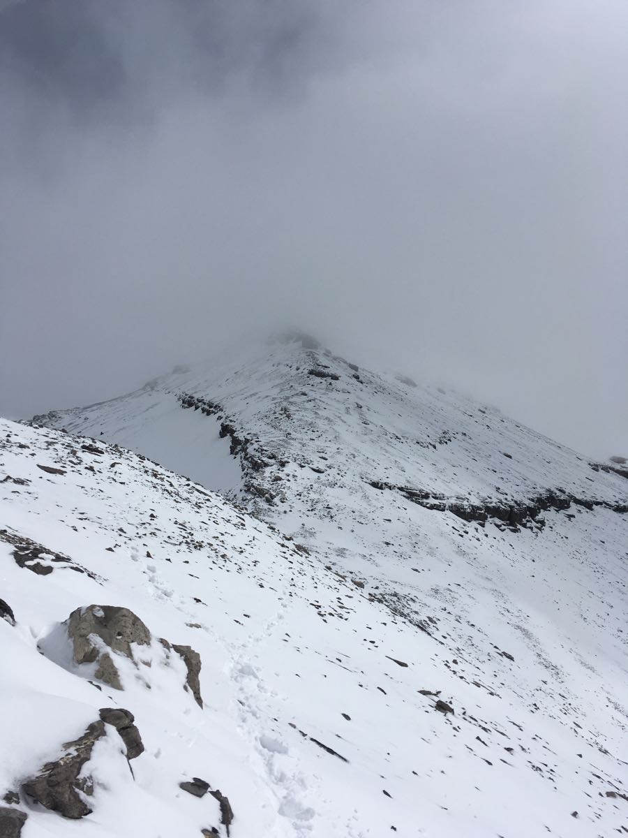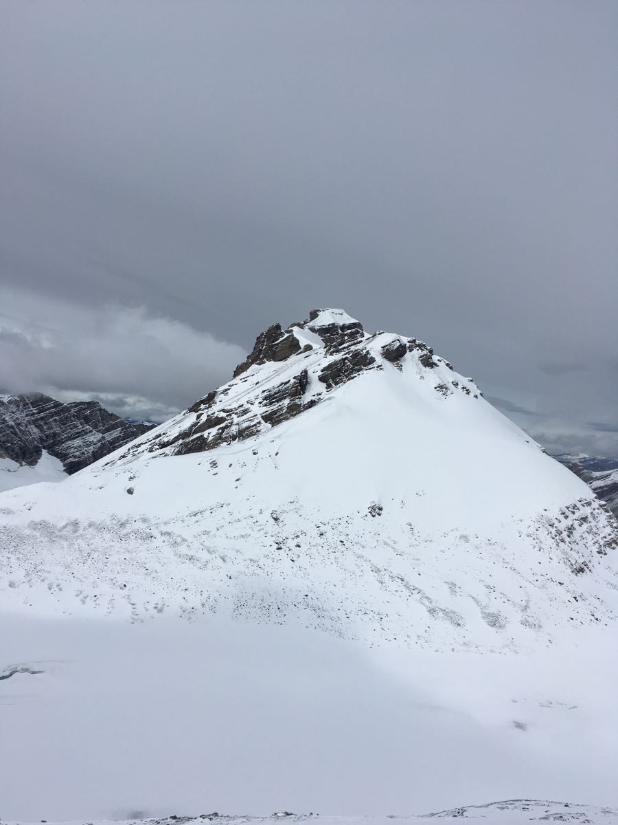 Overall good conditions on this non-technical ascent. We scrambled the south gully to the col between Willingdon and Crown and followed the SE ridge to the summit and back to our bivy at Clearwater Pass. It felt a little like winter above 2900m with up to 60cm of new snow in lee areas that were easily avoidable in the ascent gully. Good travel along the wind blown ridge.