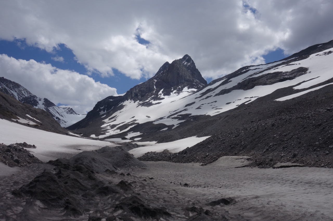 Travel from the Aster lake to the upper bivi is predominantly on snow which made travel easy. The upper bivi is free of snow with numerous water options.