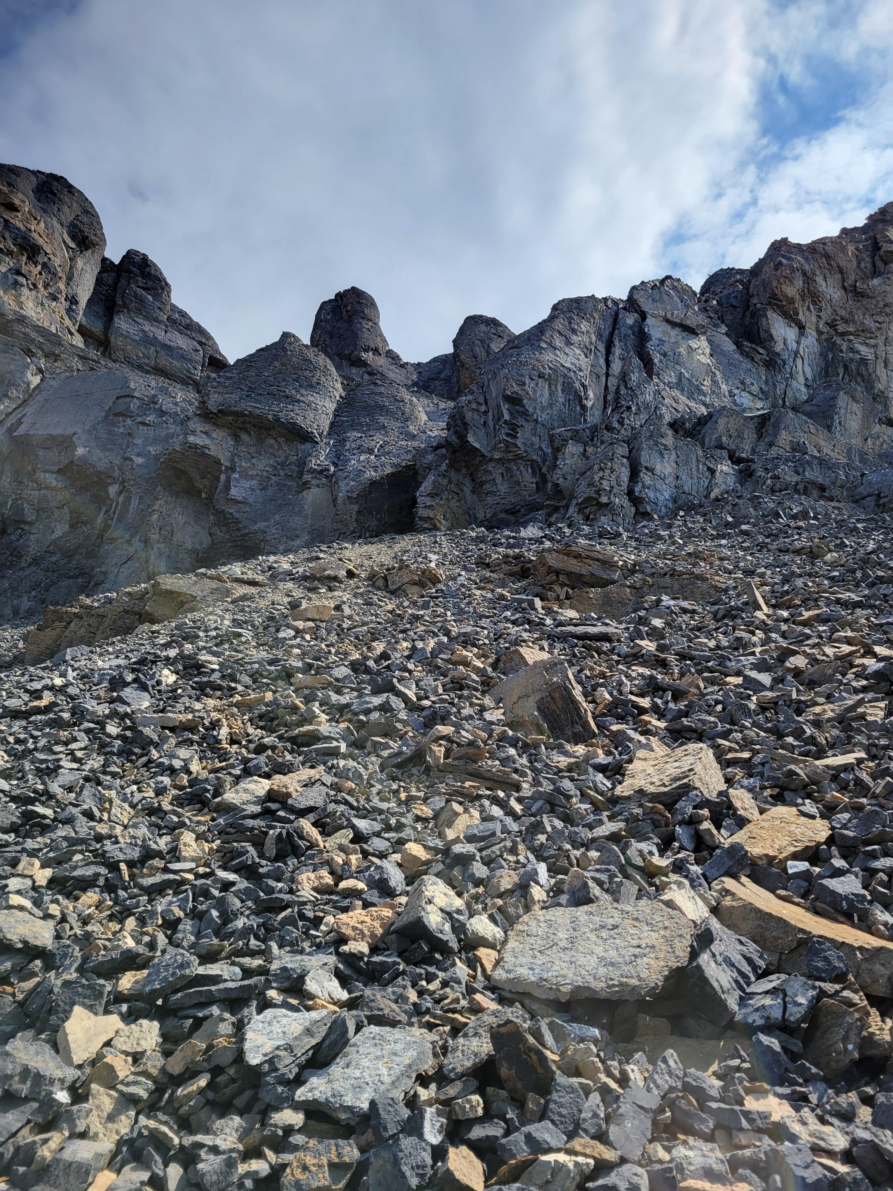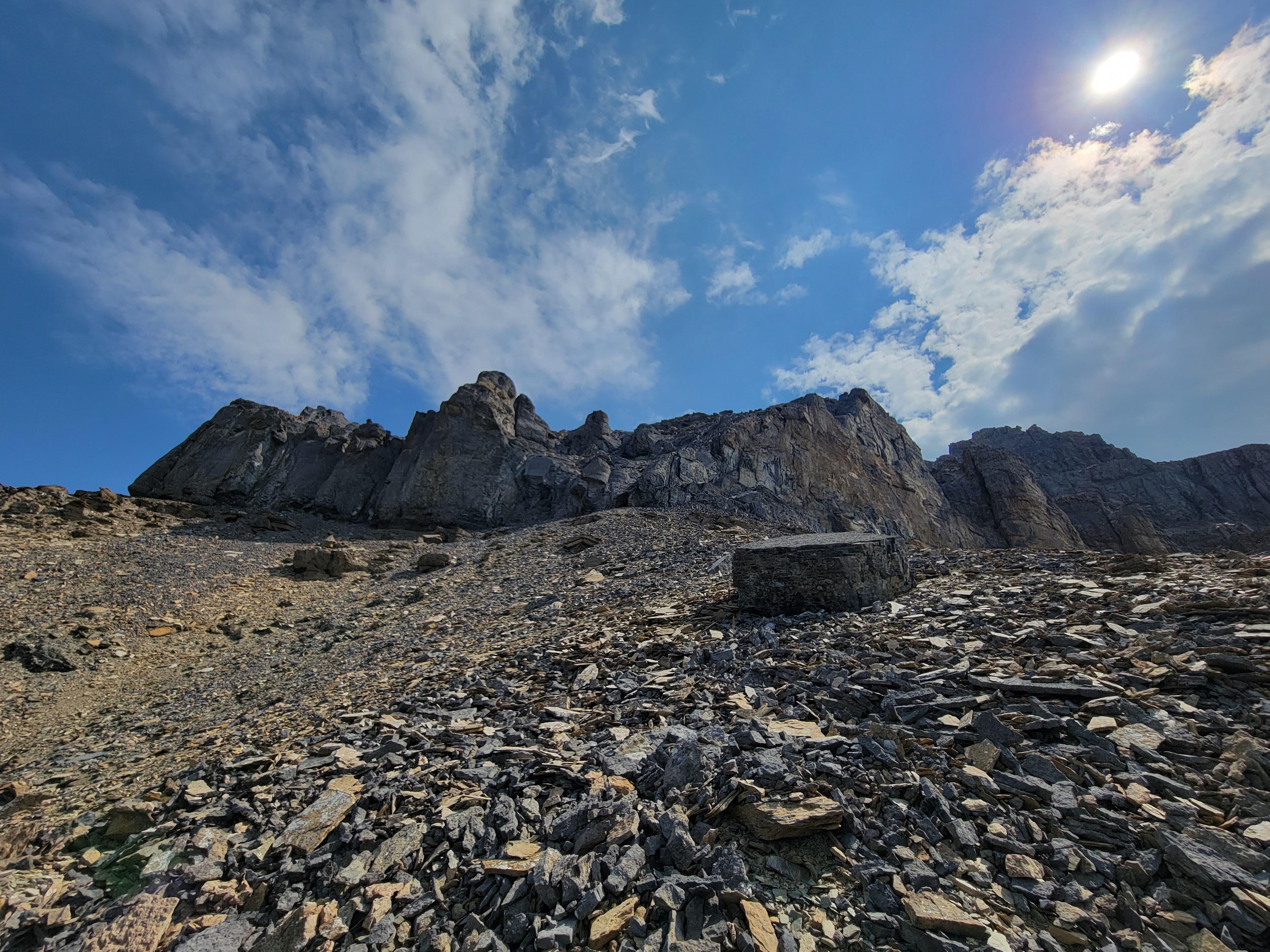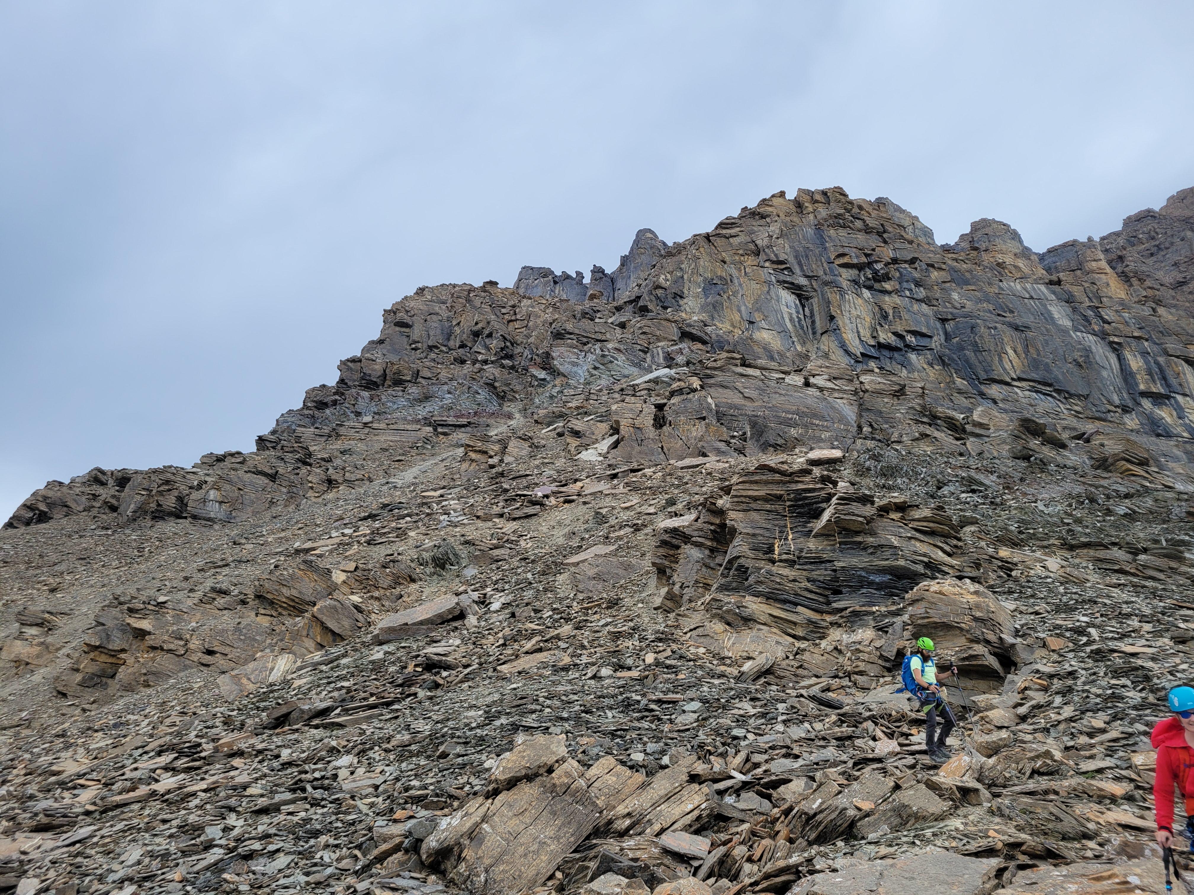 The ridge itself provided loose rock and difficult route finding. There is very little non-technical terrain on the ridge providing for an engaging ascent. The rock varied between shale, broken limestone and short sections of dolomite. We turned around at 2800m due to time and inclement weather on the horizon.