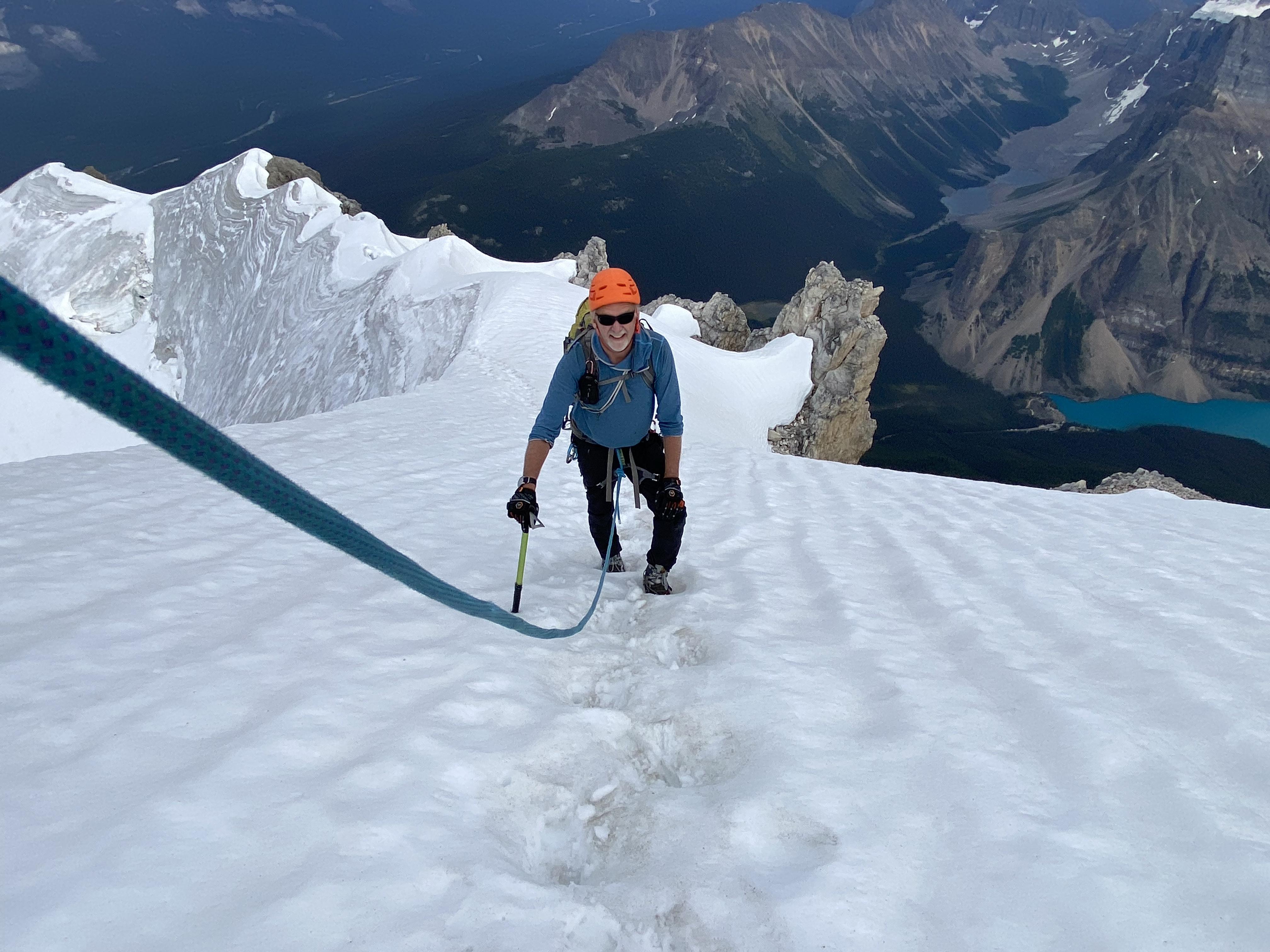 My guest and I had a warm and windless day on the East Ridge of Mt Temple yesterday. There are still snow patches on the traverse to the Black Towers and we were able to find numerous water sources in this area. The summit ridge is icy but, due to the warm weather, the ice was very soft which made for relatively easy travel with the appropriate gear. Despite the temps, we did not observe any rockfall. Of note, the parking lot seems to be full every day by 4AM.
