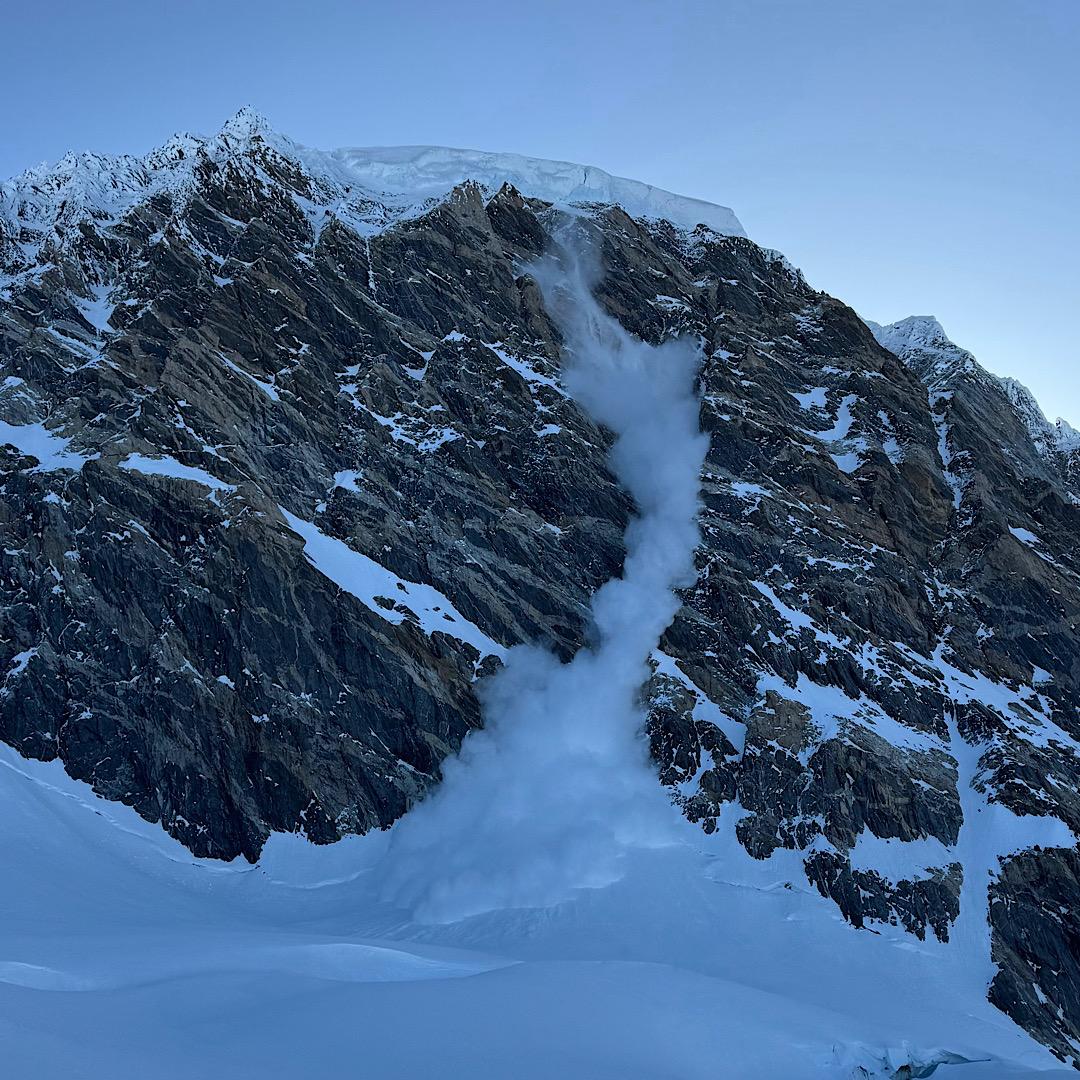 Just out from 6 days base camped on the Dias Glacier in the Waddington Range with colleagues Eric Carter and Brian Burger as well as seven clients. We had spring diurnal conditions with high pressure throughout. Solar aspects had strong crust recovery overnight and good corn during the day. Ski crampons were critical. We observed a few natural size 1 wet loose avalanches from steep rocky terrain. Polar slopes still hold ~5cm of soft powder on a sun crust. A surprising number of cornices are hanging on despite warm daytime temps, and we observed one large serac fall from the summit ridge of Mt. Waddington.